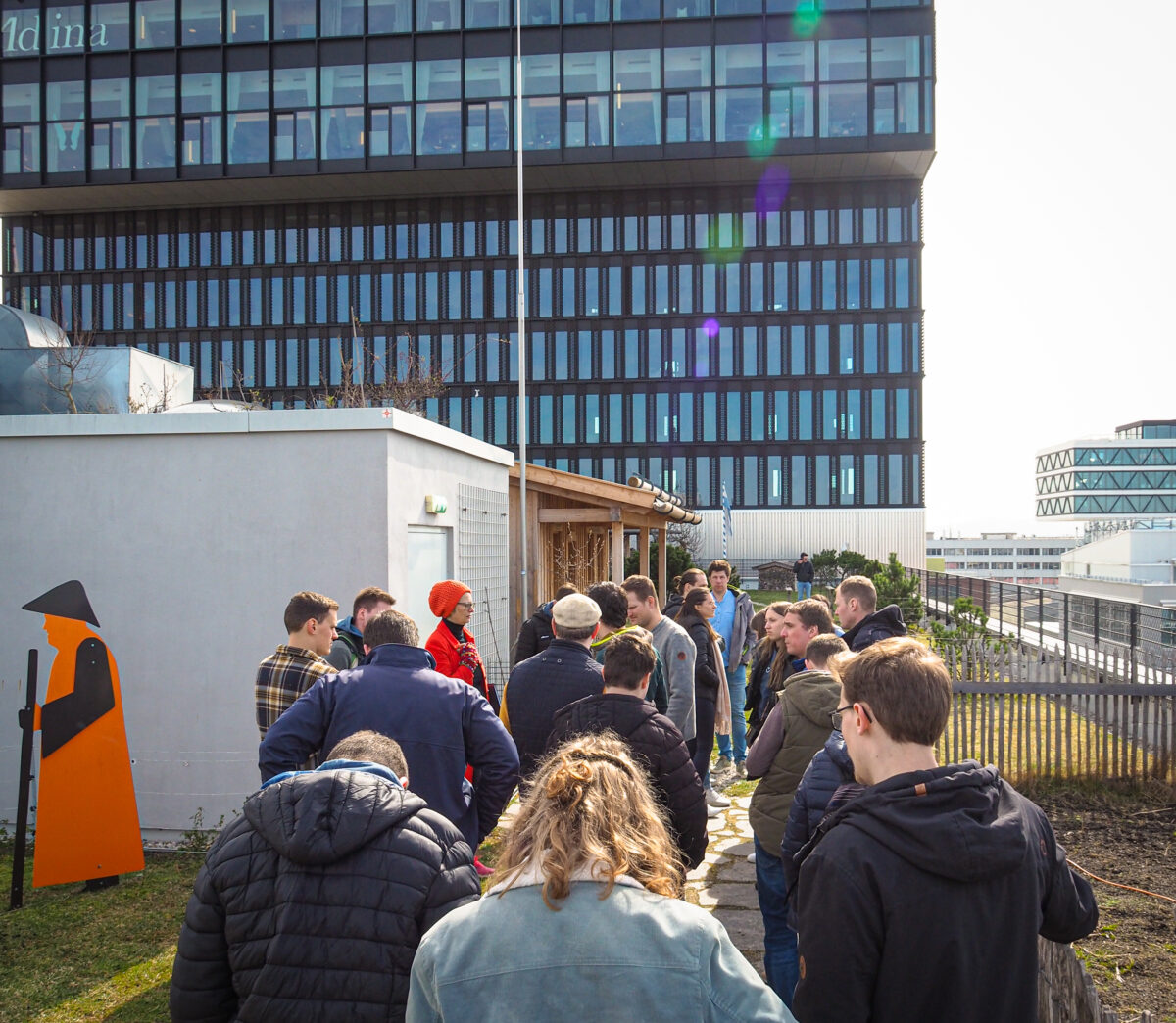 Am Vormittag stand für die Jugendgruppe eine Führung über das Gelände des Werksviertels an. Beeindruckende architektonische Neubauten und alte Industriegebäude werden vereint und durch moderne Kunstformen, wie Graffiti, veredelt. Die nachhaltige und zukunftsorientierte Bauweise der Gebäude zeigt sich beispielsweise durch viele Grünbedachungen samt eigener Schafe als Grünpfleger.