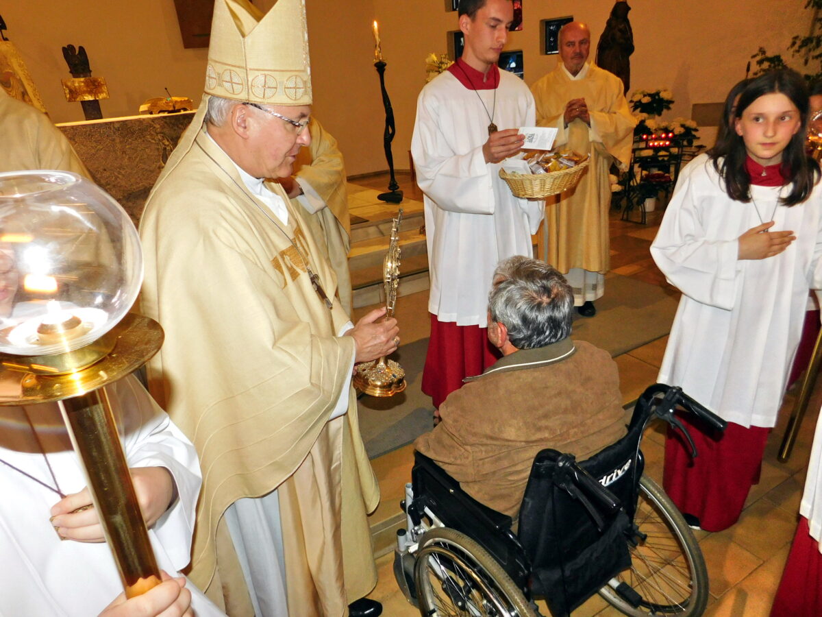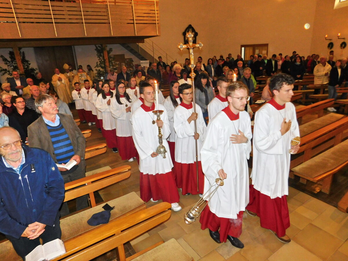Wenngleich es wie beim ersten Besuch des Bischofs 2013 anläßlich des 50-jährigen Kirchenjubiläums, so Grillmeier in seinem Grußwort, regnete, konnte das schlechte Wetter die Freude des Tages nicht trüben. Selbst wenn am letzten Maitag zu Ehren der Muttergottes die Lichterprozession witterungsbedingt ausfallen musste.