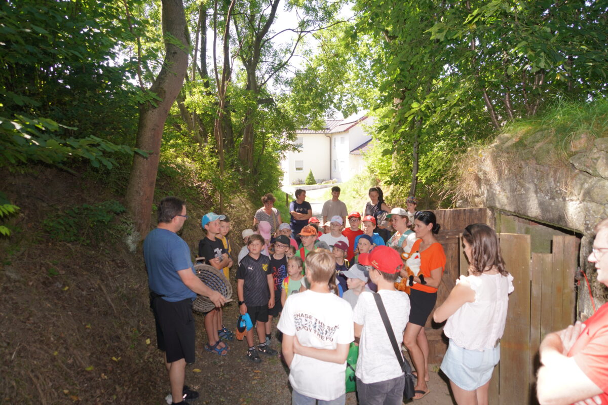 In dieser Atmosphäre nahmen die Kinder Platz, während Büchereileiterin Conny Greiner-Braun das Erzähltheater „Der wütende Zauberer“ vorbereitete. Bevor dieses begann, berichtete Gastgeber Hans-Jürgen Bergler von der langen Geschichte des Felsenkellers, der am Hohlweg zwischen Neuenhammerstraße und Badeweiher-Siedlung liegt. Der Bau sei über 200 Jahre alt und seit rund 100 Jahren im Besitz seiner Familie. „Früher haben wir hier bis zu 10.000 Kilogramm Kartoffeln – Erdäpfl – gelagert. Die mussten wir in Körben hinein- und hinaustragen – das waren etwa 250 Gänge“, erinnerte er sich schmunzelnd.