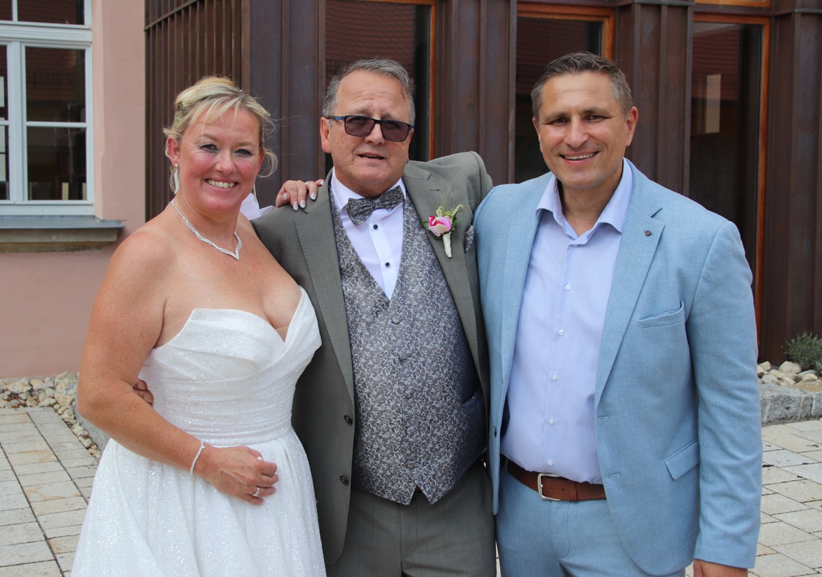 Für Bürgermeister Marcus Gradl war diese Trauung eine Herzensangelegenheit, denn es handelte sich um seinen Cousin Peter – und somit die erste Hochzeit eines Familienmitglieds, die er in seiner Amtszeit begleiten durfte. Peter Gradl stammt aus Eschenbach und hat nun zum dritten Mal den Hafen der Ehe betreten. „Alle guten Dinge sind drei“, scherzte er nach der Eheschließung.