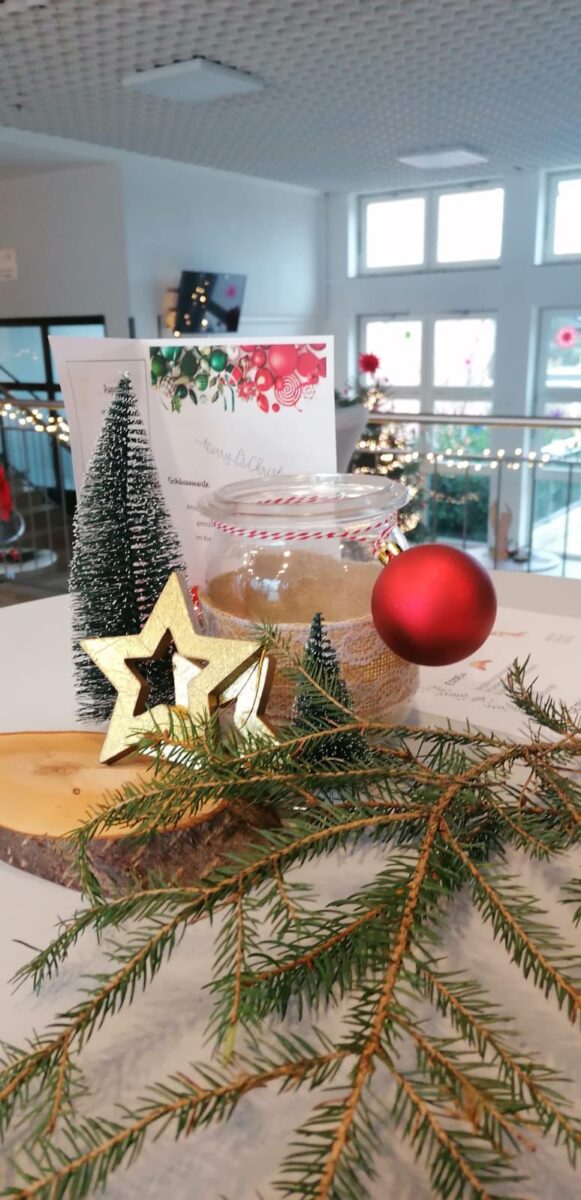 Nach dem offiziellen Teil der Veranstaltung lud die Schulfamilie zu einem gemütlichen Beisammensein ein. Bei Würstchen, selbstgebackenen Plätzchen und Getränken, darunter Glühwein und Kinderpunsch, konnten sich die Gäste austauschen und die vorweihnachtliche Stimmung genießen.