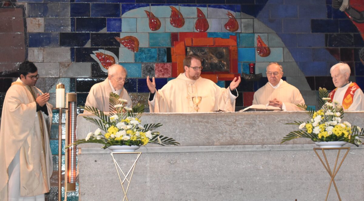 Der 90. Geburtstag von Pfarrer Hans Bayer, einem gebürtigen Manteler, wurde am Samstag mit einer Dankmesse gefeiert, bei der die große Friedenskirche gut gefüllt war. Neben dem „Geburtstagskind“ und Hauptzelebrant Pfarrer Daniel Fenk, nahmen Kaplan Raveendra Reddy Ponnapati, Ruhestandspfarrer Ludwig Gradl und der ehemalige Pfarrer von Kohlberg und Kurskollege Bayers, Andreas Schlagenhaufer, daran teil.