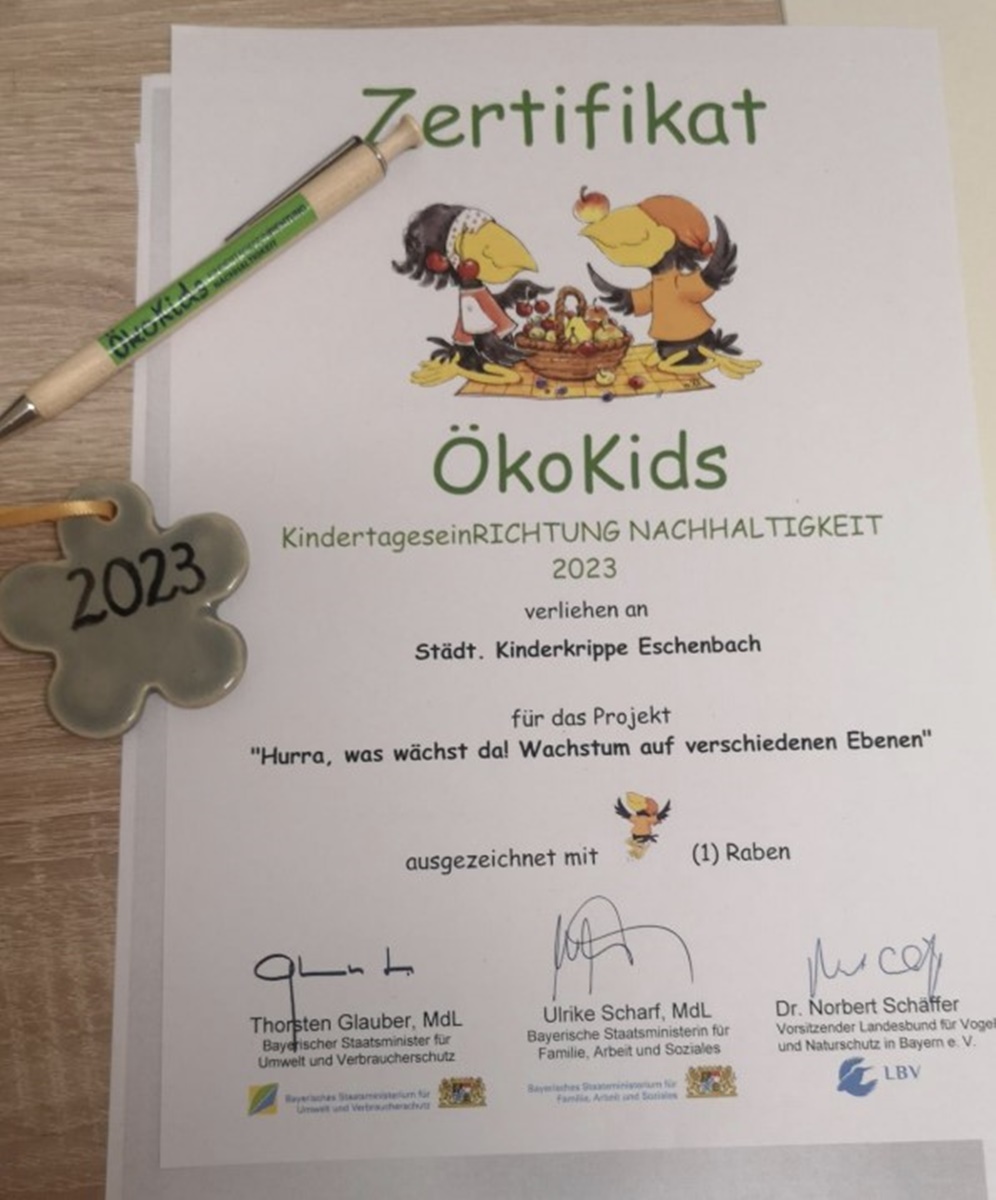 Zertifikatsverleihung von Ökokids an den Städtischen Kindergarten Eschenbach