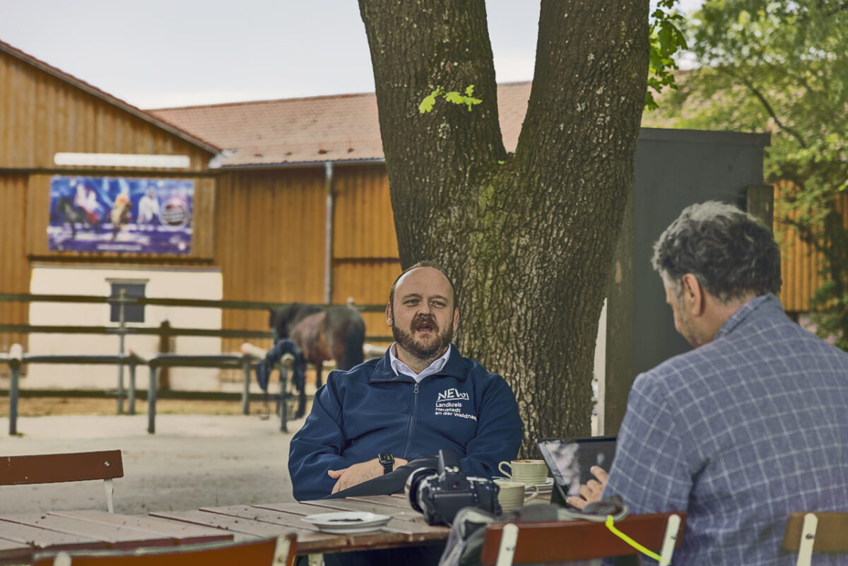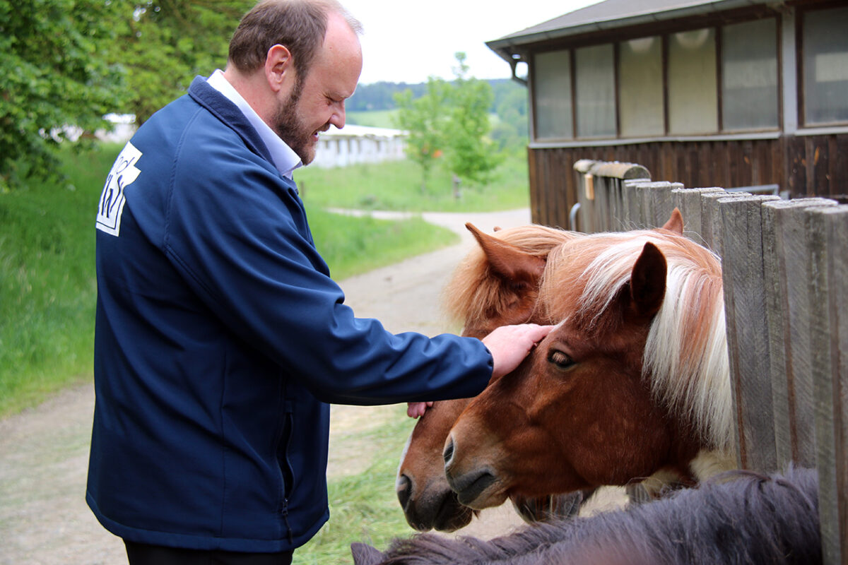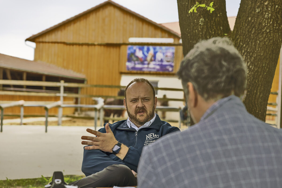 In seinem Büro im Landratsamt haben wir Andreas Meier schon oft getroffen. Zu seinem Zehnjährigen hat der Landrat von Neustadt/WN einen Wunsch frei: Treffen wir uns an einem seiner absoluten Lieblingsorte! Er muss nicht lange nachdenken: Wir interviewen den CSU-Politiker am historischen Wurzer Lipperthof des Ehepaars Irene und Uli Reber, die das Islandpferde-Gestüt in zweiter Generation fortführen.