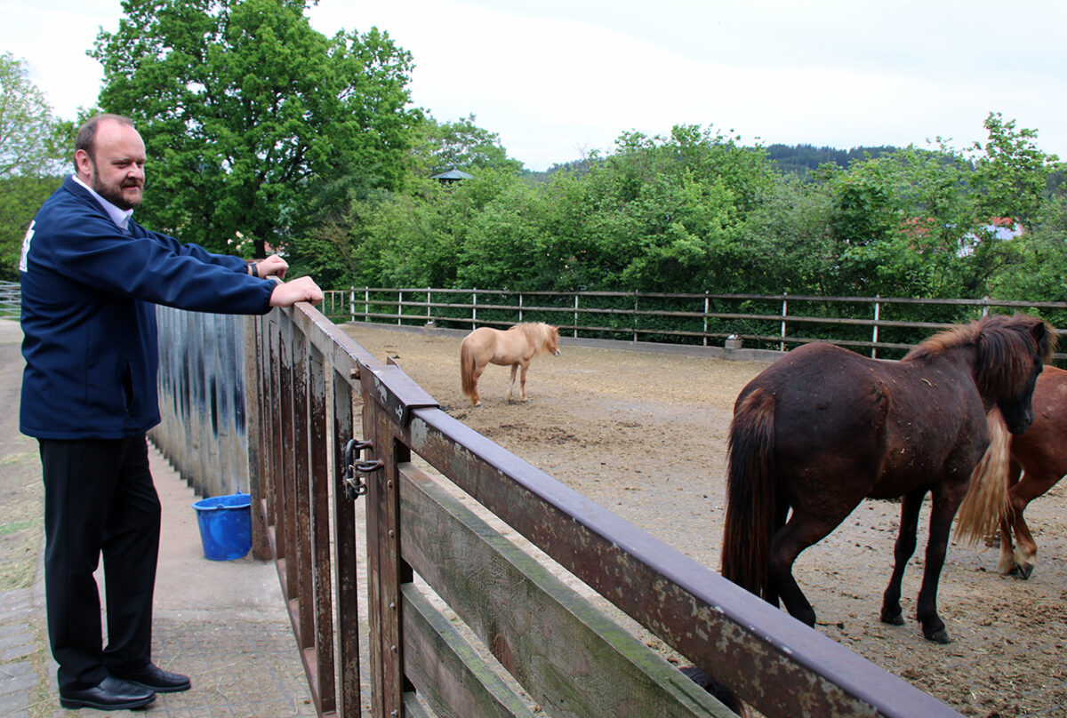 Man glaubt es dem Landrat aufs Wort, wenn man ihn hier draußen am Lipperthof so beobachtet, wie er versonnen in die Landschaft blickt, kurz mal auflacht, weil irgendwo eine Meise zwitschert, den Pferden hinterherschaut, wie sie neben ihren Pferdemädchen dahintrotten. Hier ist er Mensch, hier darf er sein.