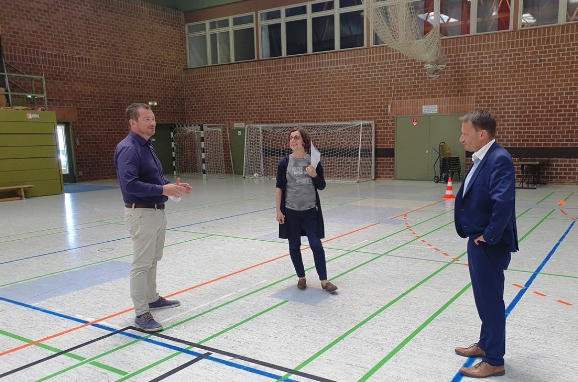 Jutta Häusler und Jens Meyer wussten von vielen Mängeln zu berichten, die dringend angepackt werden müssen: Die Unterkonstruktion des Hallenbodens weist mehrere Schadstellen auf, die die Verletzungsgefahr erhöhen. Auch verfügen die Wände über keinen Prallschutz – ebenfalls eine potentielle Gefahrenstelle. Die in die Jahre gekommene Tribüne lässt sich nicht mehr wie vorgesehen ausziehen, Sanitär- und Elektroinstallationen sind dringend sanierungsbedürftig.