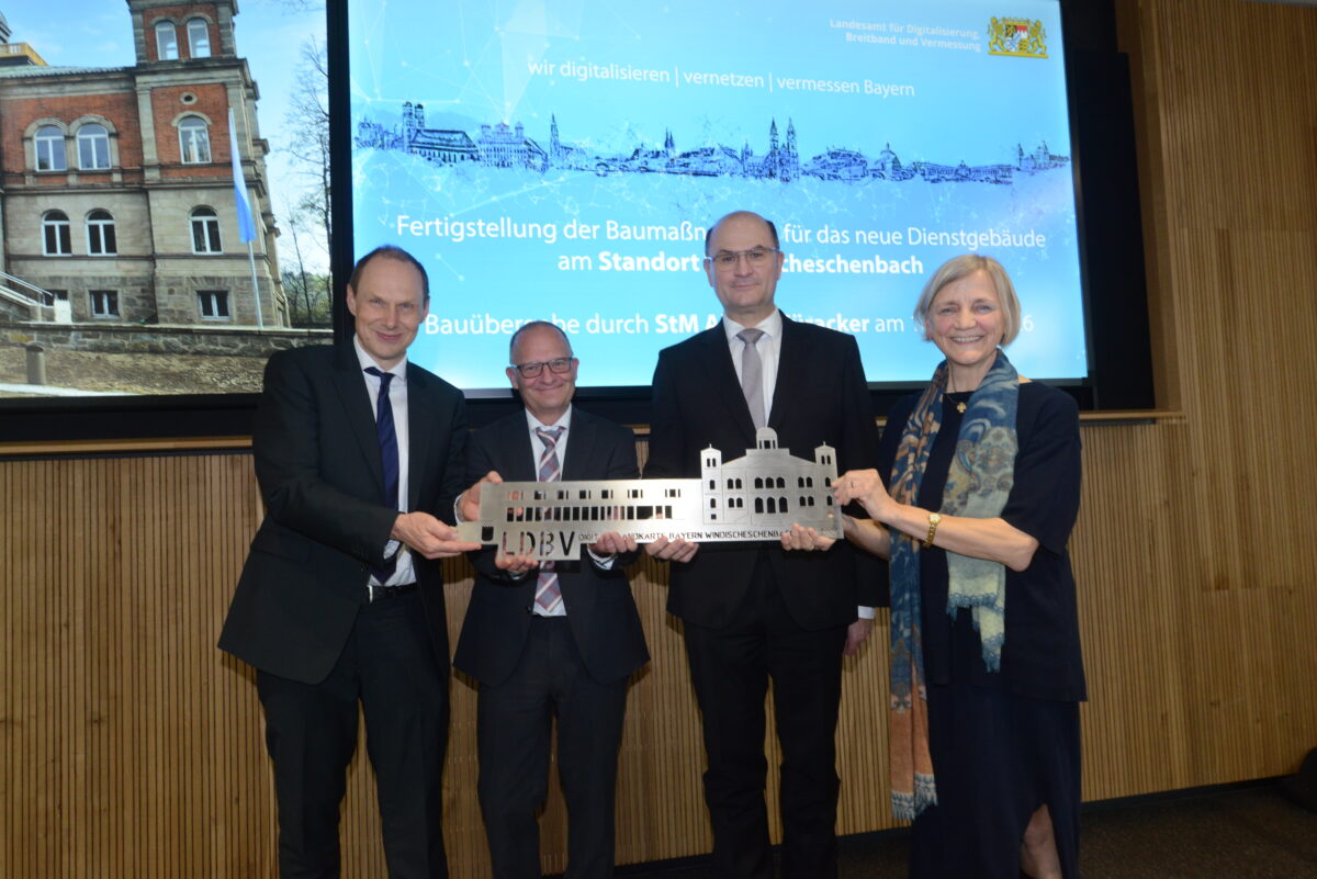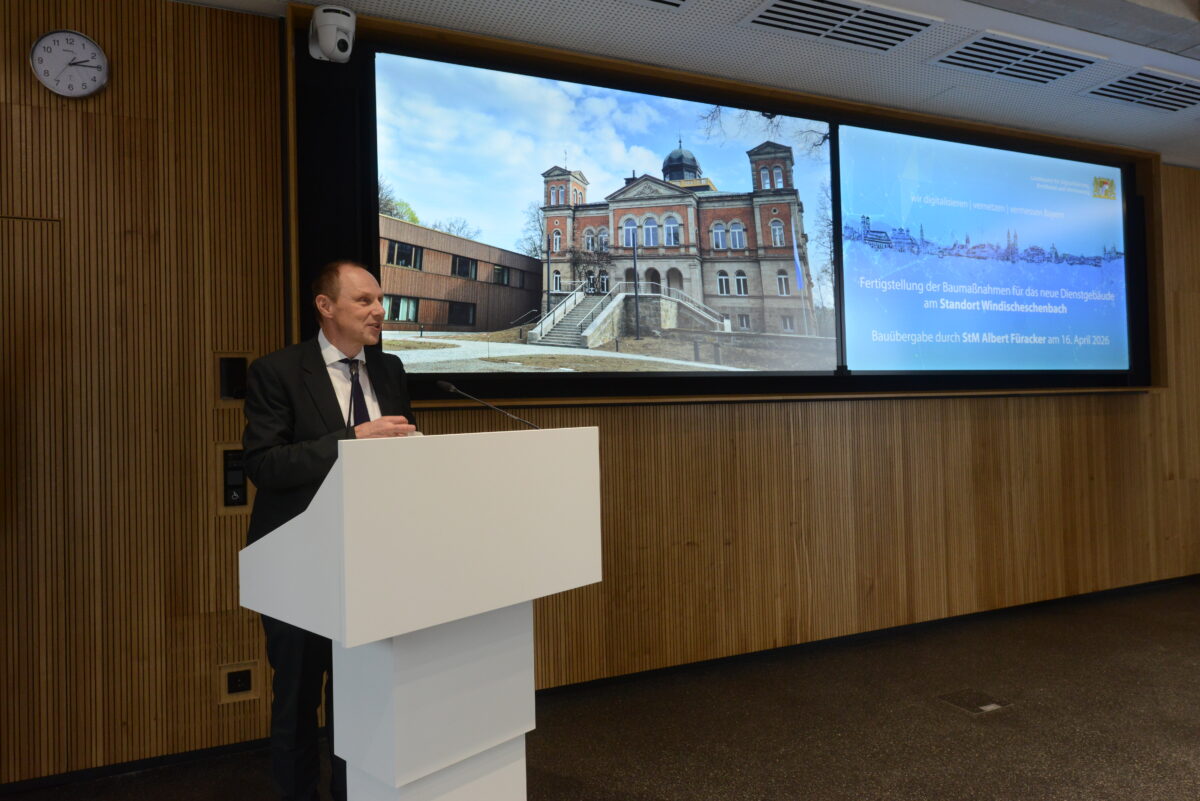 „Mit der restaurierten Stützelvilla und dem hochmodernen Anbau zeigen wir, dass der Erhalt historischer Bausubstanz und zukunftsgerichtetes Bauen Hand in Hand gehen. Die sechzig neuen Arbeitsplätze in Windischeschenbach sind das Signal: Modernste Kartografie und der BayernAtlas haben ihre Heimat nicht nur in den Metropolen, sondern mitten im ländlichen Raum.“ Mit diesen klaren Aussagen leitete der Bayerische Finanz- und Heimatminister Albert Füracker die offizielle Übergabe der umfangreich renovierten, um- und ausgebauten Stützelvilla sowie des gelungenen Anbaus für die Außenstelle „Digitale Landkarten Bayern“ in Windischeschenbach als Außenstelle des Landesamtes für Digitalisierung, Breitband und Vermessung in Waldsassen ein.