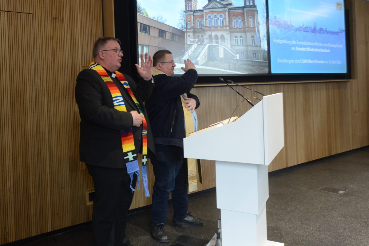 Die Geistlichen Hubert Bartel und Thomas Berthold segneten nach Ansprachen die Räumlichkeiten.