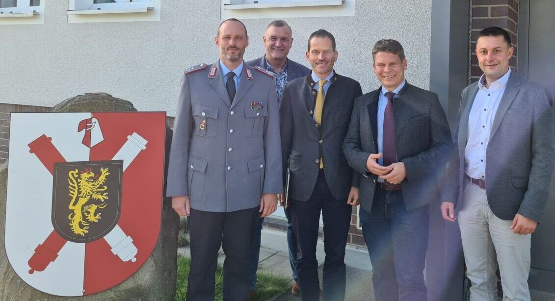 Regelmäßig besucht Bundestagsabgeordneter Albert Rupprecht den Bundeswehrstandort Weiden und ist so immer im Bilde über die Veränderungen in der Kaserne. Gemeinsam mit dem Fraktionsvorsitzenden Dr. Benjamin Zeitler, dem Kreisvorsitzenden Stephan Gollwitzer und der stellvertretenden Kreisvorsitzenden Hans-Jürgen Gmeiner war man mit dem Kommandeur des Artilleriebataillons 131, Oberstleutnant Wallschus, zu verschiedenen Themen im direkten Austausch.