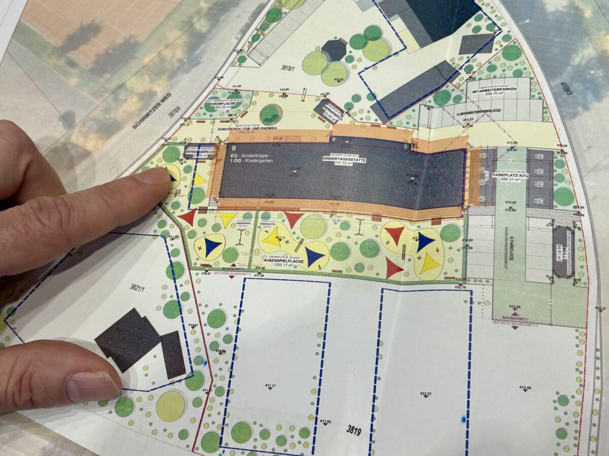 Robl hatte Pläne dabei. Dabei wurde klar: Das wird kein kleiner Kindergarten. Die neue Einrichtung wird ähnliche Dimensionen haben wie das städtische „Tohuwabohu“ in der Mooslohe. Architekt Robl baut am Postkeller auf 1.235 Quadratmetern, direkt im Anschluss an das Bestandsgebäude (Gastwirtschaft/Saal). Mit den Wirtsleuten bestehe bestes Einvernehmen. Sie würden sich über Kinder als Nachbarn freuen.