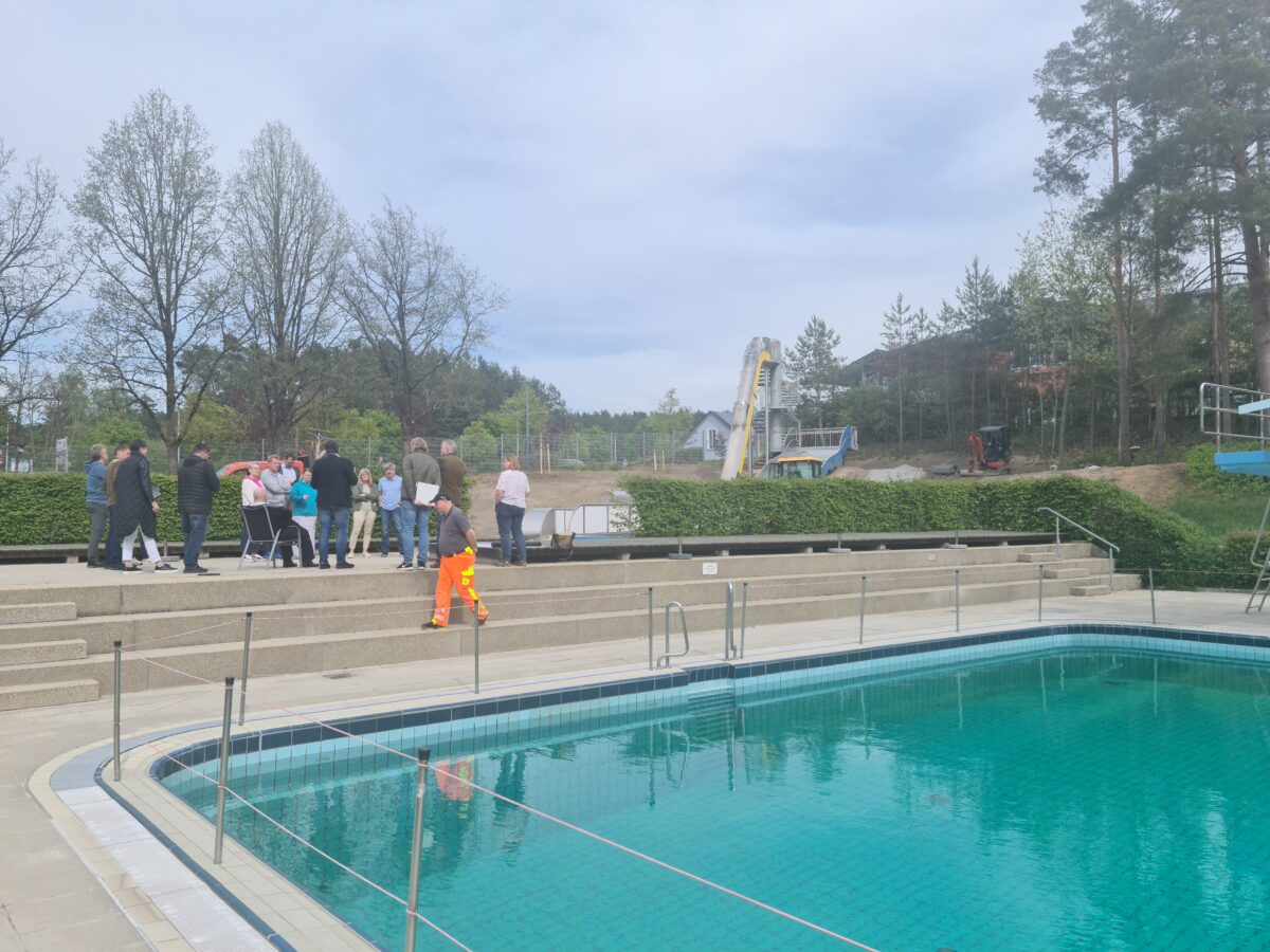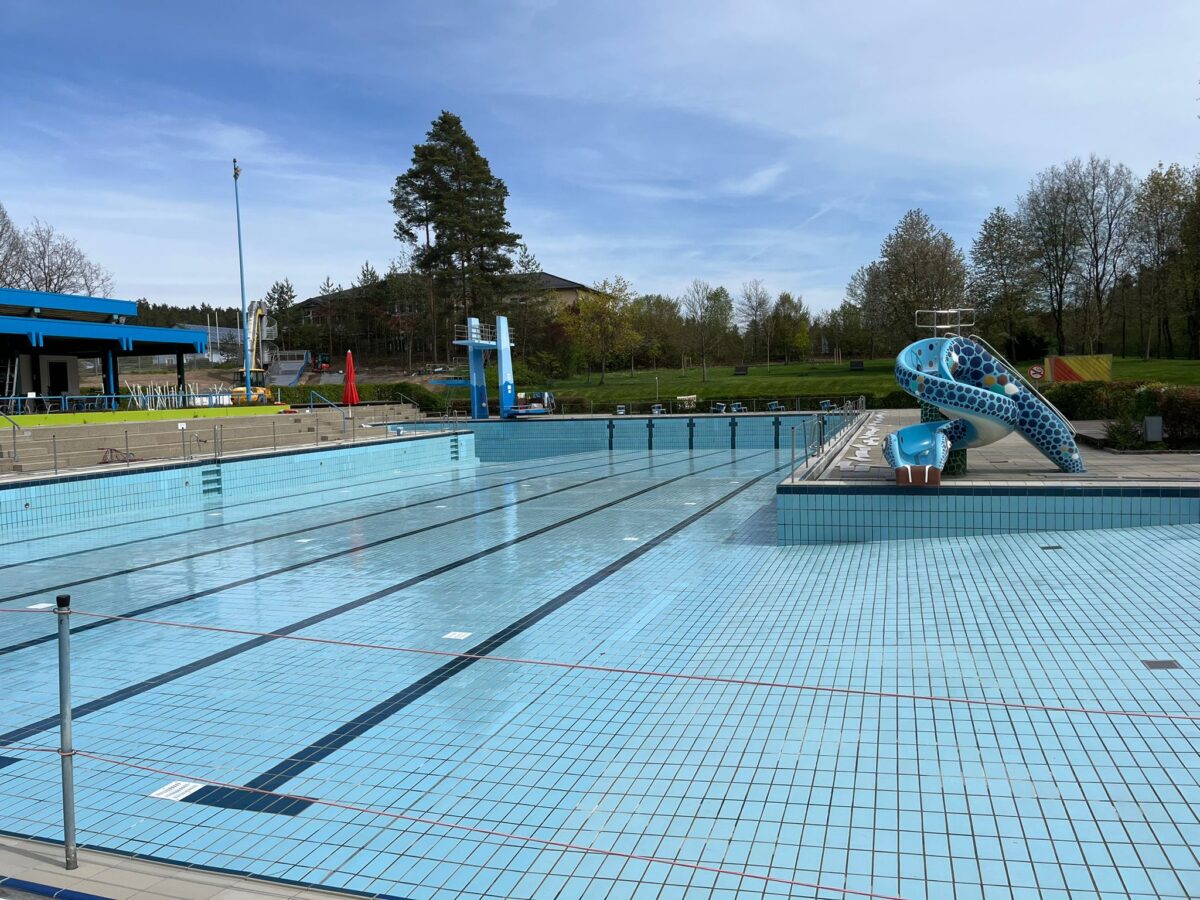 Die Vorbereitungen für die Waldbadsaison sind im vollen Gange – Das Wasser läuft gerade ins Becken. Ganze zwei Millionen Liter passen in das große Becken, darum dauert die Füllung auch sieben Tage. Das Highlight wird die neue Wasserrutsche mit Freefall- und breiter Wellenrutsche werden.