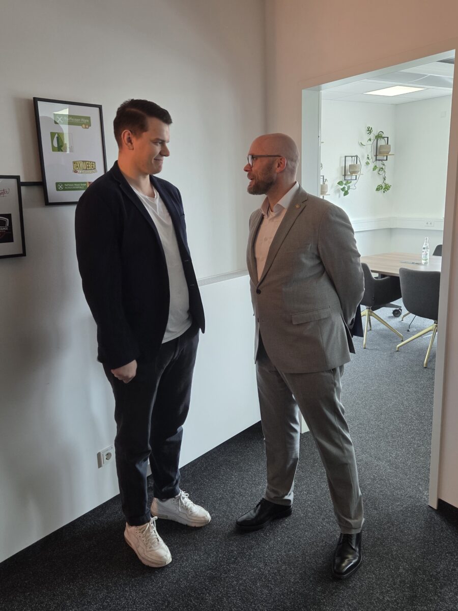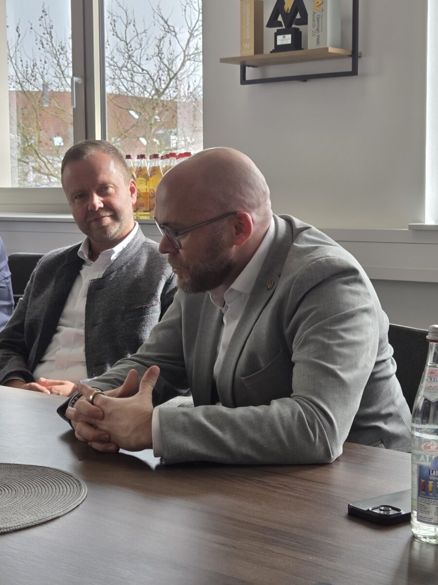 Zu Beginn des Termins führte Geschäftsführer Kevin Lerich durch die modernen Räumlichkeiten des Unternehmens. Dabei wurde nicht nur über digitale Strategien gesprochen; bei einem spontanen Kickerduell zwischen Dr. Mehring und Hans Martin Grötsch gegen Bernhard Heinisch und Kevin Lerich zeigte sich, dass Teamgeist und Begeisterung auch außerhalb des Konferenzraums gelebt werden.
