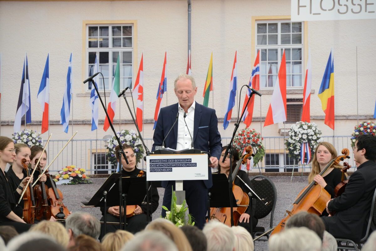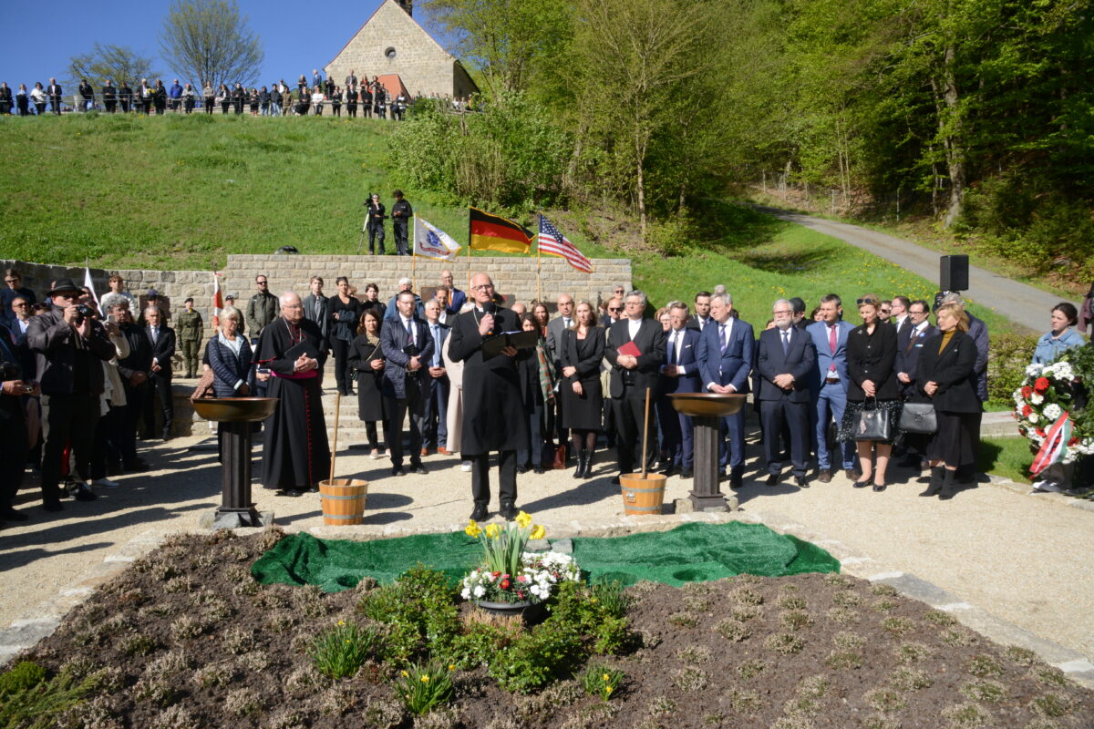 Tobias Reiß, Vizepräsident des Bayerischen Landtages, dankte den amerikanischen Soldaten, die 1945 das KZ befreiten. Die Vereinigten Staaten hätten es Deutschland ermöglicht, auf den Trümmern eines in jeder Hinsicht zerstörten Landes eine freiheitliche Demokratie aufzubauen. Und diese gewonnene Freiheit sollten alle Bürger als größtdenkbare Verantwortung begreifen. Als Repräsentant des Parlaments erkenne er die radikalen Verschiebungen in Verbindung mit Spott, Verhöhnung und Feindseligkeit. „Unsere Demokratie und unsere Freiheit sind in Gefahr“.