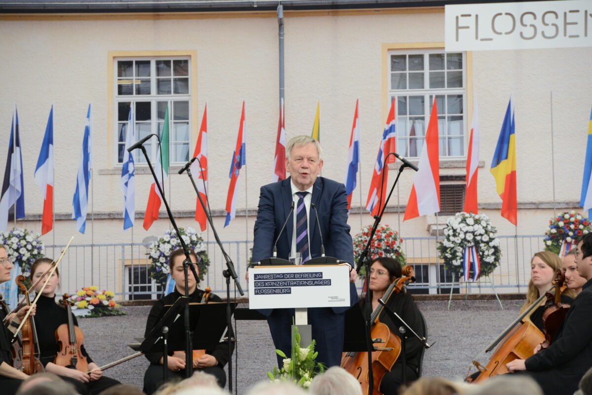 Der Leiter der KZ-Gedenkstätte, Dr. Jörg Skriebeleit, sprach mit nachdenklichen Worten über die aktuelle politische Lage. Die Welt scheine nicht mehr verlässlich und sicher zu sein. So lasse sich die überwältigende Anteilnahme an diesem Gedenktag erklären, meinte Skriebeleit. “Wir sind heute gefordert, unsere Ohren und Herzen zu öffnen.” Aus der ganzen Welt seien Besucher gekommen, darunter sechs überlebende Häftlinge des Lagers Flossenbürg, die Skriebeleit namentlich auflistete.