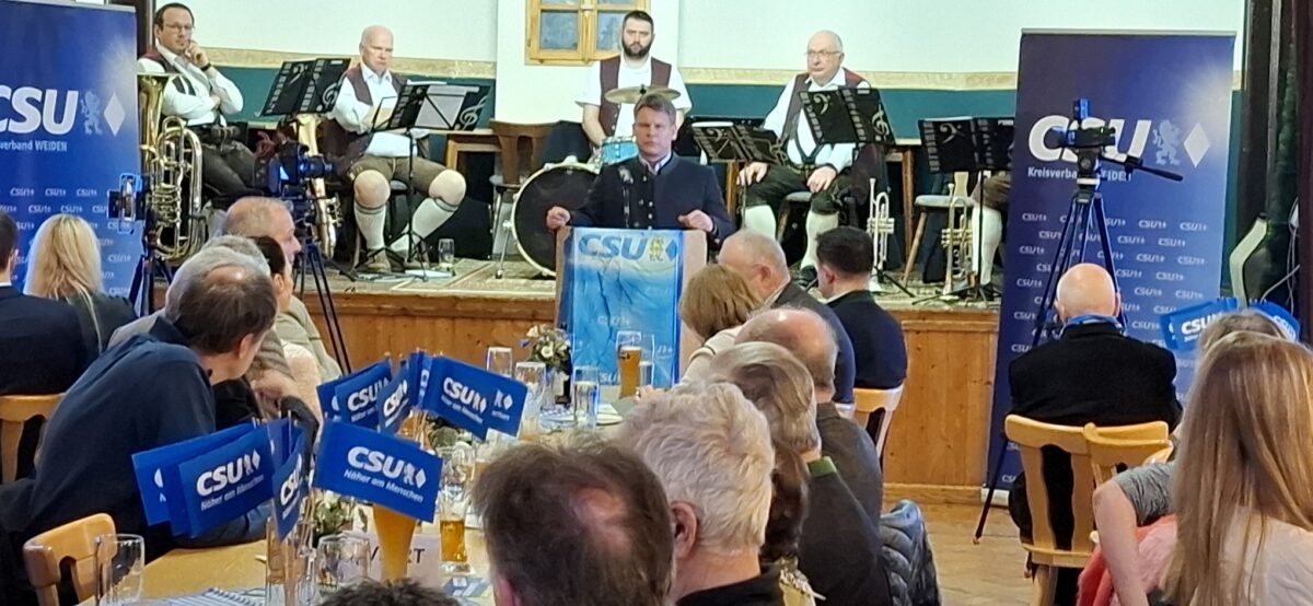Traditionell traf sich die CSU im gut gefüllten Postkeller. Als erster Redner trat der CSU-Kreisvorsitzende Stephan Gollwitzer ans Rednerpult. Nach seiner Begrüßung, bei der er die Abordnung der Schülerunion und deren Vorsitzenden Paul Zaruba besonders willkommen hieß, führte er in einem Streifzug von der Bundespolitik bis zur aktuellen Stadtratspolitik.