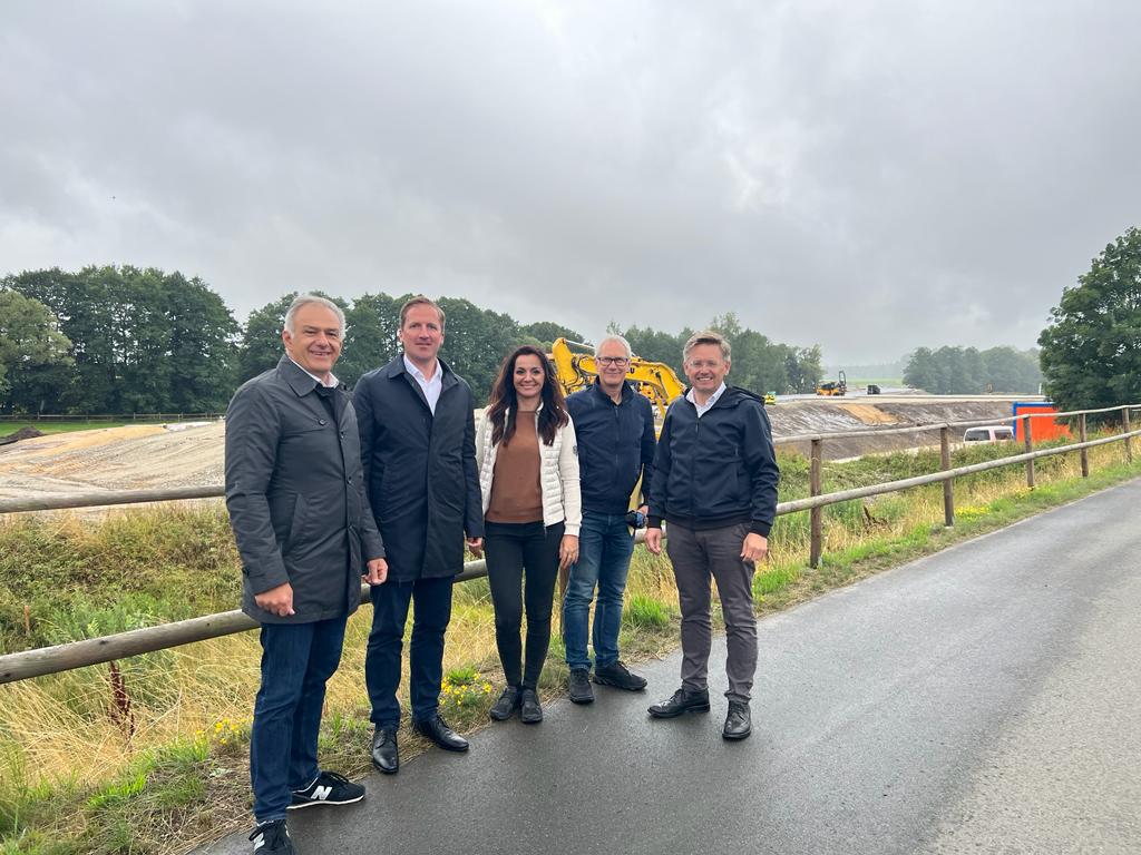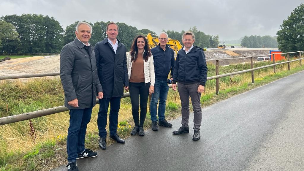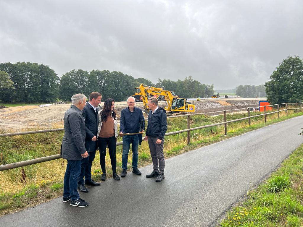Zum Abschluss des Termins folgte eine Besichtigung der Baustelle der Ortsumgehung Waldershof, die mit großen Schritten voranschreitet. Bauabschnitt Zwei wurde in der vergangenen Woche asphaltiert. Die Radunterführung am Kösseinebad entsteht gerade und die Verbindung zur Staatsstraße Richtung Kemnath wächst unübersehbar aus dem Boden. „Die Bahn bestimmt letztlich das hohe Tempo der Maßnahme. 2024 müssen wir so weit sein, dass die beiden Bahnbrücken eingeschoben werden können.“ So der Leiter des Straßenbauamts.