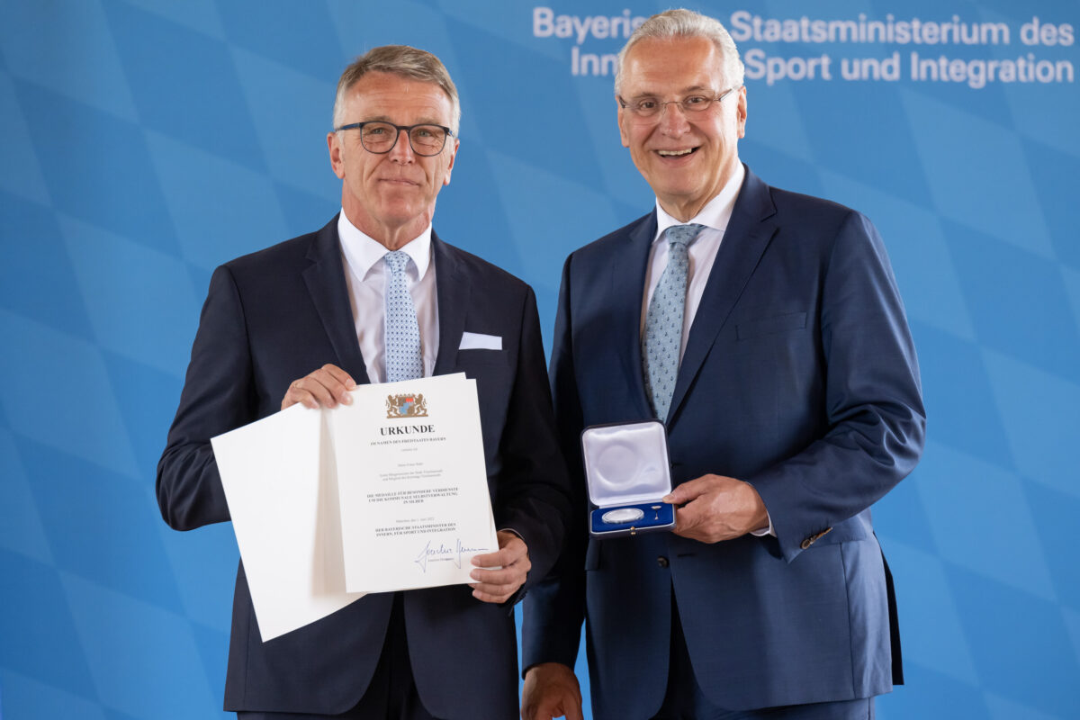 Joachim Herrmann, Bayerischer Staatsminister des Innern, für Sport und Integration, hat am Dienstag im oberbayerischen Dachau Kommunale Verdienstmedaillen in Silber und Bronze an 27 Persönlichkeiten aus Oberbayern, Niederbayern, der Oberpfalz und Schwaben verliehen.
