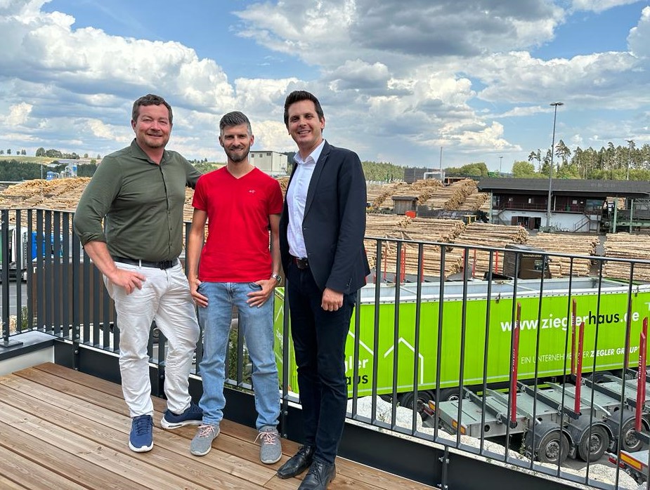 Gemeinsam mit dem SPD-Bundestagsabgeordneten und Mitglied im Ausschuss für Wohnen, Stadtentwicklung, Bauwesen und Kommunen, Timo Schisanowski, traf sich Grötsch mit Ziegler-Geschäftsführer Andreas Sandner, um sich über aktuelle Entwicklungen im Holzbausektor auszutauschen. Ende Juni hatte die Bundesregierung ihre „Holzbauinitiative“ beschlossen. Holz ist der einzige Rohstoff, mit dem beim Hausbau CO₂ gespeichert werden kann. Da der Bau- und Wohnsektor in Deutschland für circa 40 Prozent der Treibhausgase verantwortlich ist, sei das ein wichtiger Schritt hin zu mehr Klimaschutz.