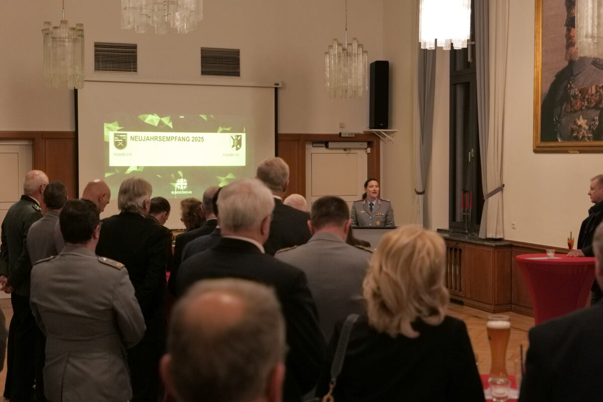 In ihrer Rede zog Werner ein Resümee über das vergangene Jahr und gab einen Ausblick auf das laufende Jahr. Der Schwerpunkt für 2024 lag nach Aufstellung des Stabes und der Ersten Batterie beim PzArtBtl 375 zunächst bei der Aufstellung der Zweiten, Dritten und Vierten Batterie. Diese Maßnahme wurde bei einem feierlichen Appell im Juli, unter Beisein der Öffentlichkeit in der Kaserne offiziell vollzogen.