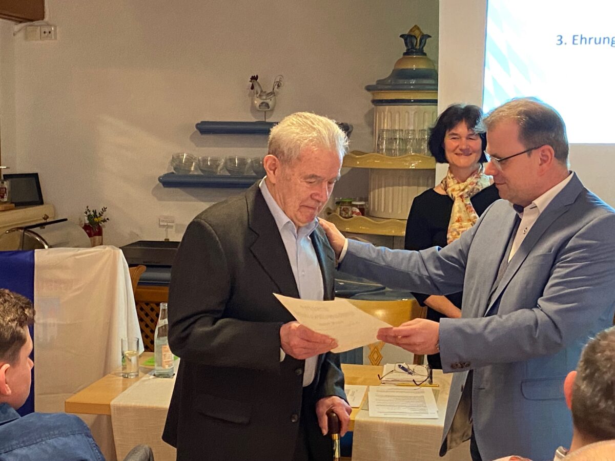 Gleich zu Beginn unterstützte Budnik die Vorsitzende bei der Ehrung dreier Jubilare. Thomas Witt und Thomas Kreinhöfner wurden zunächst für 25-jährige Parteimitgliedschaft geehrt. Dann betrat Georg Bauer die Bühne, 65 Jahre Parteitreue attestierte das Stadtoberhaupt dem Jubilar und überreichte ihm die Urkunde dafür, inklusive einer Flasche Zoiglbier und Plätzchen aus dem „Eine-Welt-Laden“, Windischeschenbach sei schließlich auch „Fairtrade-Stadt“. Die Übergabe der Präsente und den Dank der Parteigenossen quittierte er lediglich kurz: „Hob i gern g’macht für Neihaus.“