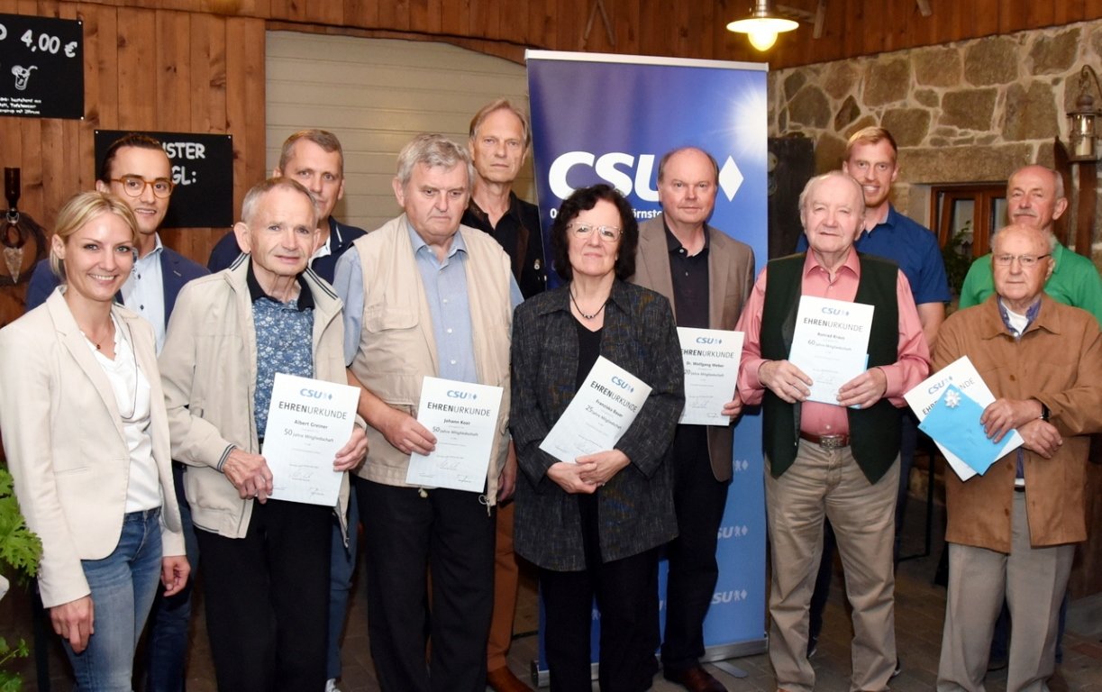 Vor drei Jahrzehnten unterschrieb Josef Wagner seinen Aufnahmeantrag. Auf ein halbes Jahrhundert Mitgliedschaft blicken Albert Greiner, Konrad Greiner und Johann Kost zurück. Ganze 60 Jahre halten Eilhard Fichtner und Altbürgermeister Konrad Kraus der Christlich-Sozialen Union die Treue.