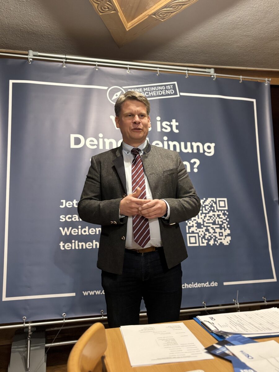 CSU-Kreisverbandschef Stephan Gollwitzer sprach das Schlusswort: „Benjamin Zeitler wurde von der Kreisvorstandschaft einstimmig als Oberbürgermeisterkandidat vorgeschlagen. Gollwitzer wünschte sich für die Nominierungsveranstaltung am 29. April 2025 ein volles Haus und bat die Delegierten und Ersatzdelegierten zur Unterstützung um zahlreiches Erscheinen.