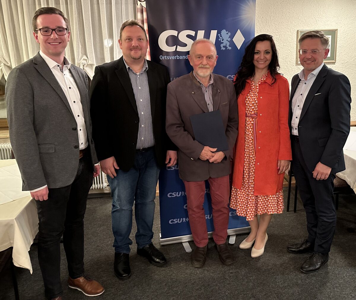 Fraktionssprecher Maximilian Kastner informierte zu den Anträgen der CSU-/WBS-Stadtratsfraktion zum Thema Parkplätze. Während die Parkplätze im Bereich Stadtpark/Josefstadt bereits umgesetzt sind, wird der Wanderparkplatz Hohenhard noch intensiver zu behandeln sein. Ein Höhepunkt des Abends war die Ehrung von Gerhard Hausner für die 50-jährige Mitgliedschaft in der CSU, seit 1974 ist er der Partei treu geblieben. Vorsitzender Rabenbauer und Kreisvorsitzender Reiß überreichten die Urkunde der Partei und ein Geschenk als Anerkennung.