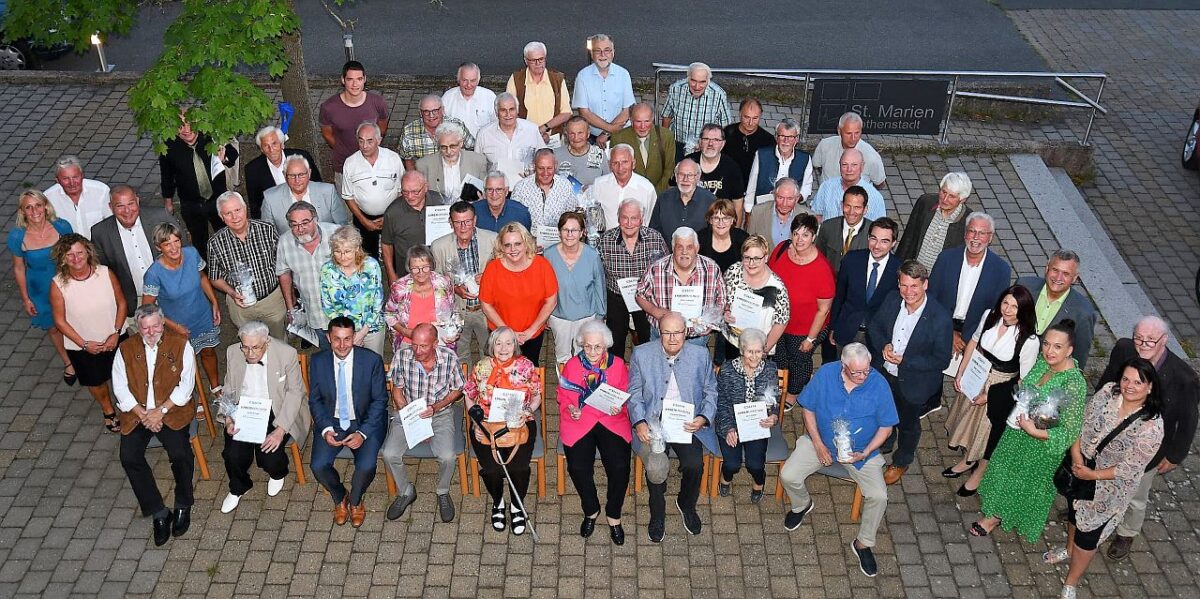 55 Jahre: Georg Schneider, Heinz Pohl, Robert Müllbauer, Hans Stock, Josef Werner, Franz Hofmann, Gerd Hofmann, Ernst Braun, Anna Hägler, Monika Hiermaier, Hans Hiermaier.
