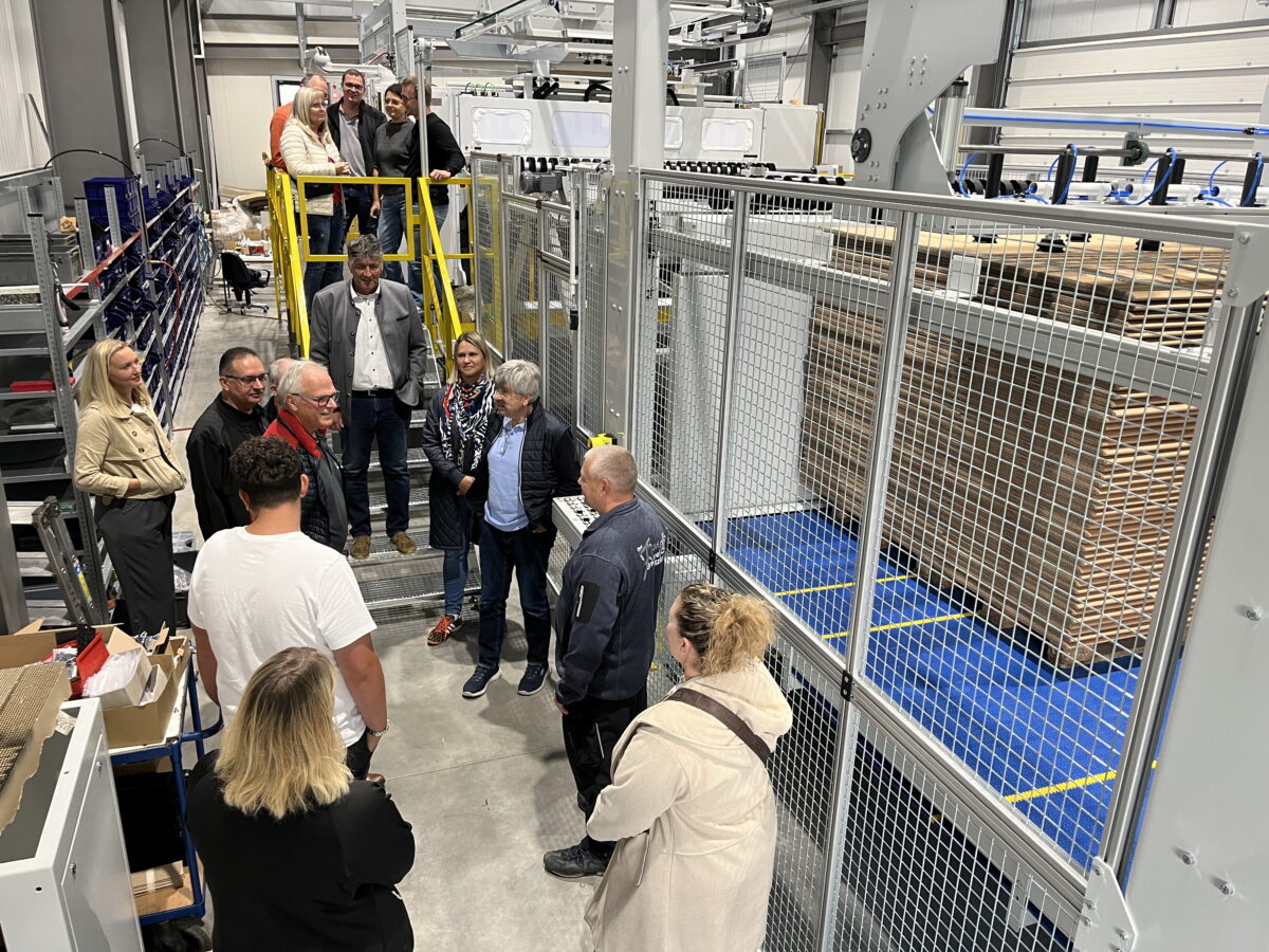 Maschinenbauingenieur Klaus Schnabel hob 1994 die Firma SMT Sondermaschinentechnik aus der Taufe. Schnell folgte im Jahr 2002 im Gewerbegebiet der Bau einer großen Fertigungshalle mit Büro- und Sozialräumen. Ein weiterer Flächenkauf und Erweiterung der Halle folgten 2014 und 2024. Lackieranlage und ein großer Lagerbereich kamen hinzu. Jüngst wurden im Stadtrat weitere Gewerbeflächen für den Betrieb genehmigt, auf dem neuen Grund sollen schon in den nächsten Jahren die jetzigen Produktionsflächen verdreifacht werden. Grund ist die Größe der gefertigten Maschinen und die Vollautomatisierung bei der Nutzentrennung von Wellpappe und Papierwabenplatten. Beim Gang durch den Betrieb wurden die Arbeitsbereiche von SMT erläutert. Ständig wurde die Geräte- und Maschinenausstattung der Firma erweitert. Hochmoderne CNC Dreh- und Fräsmaschinen füllen die Hallen.