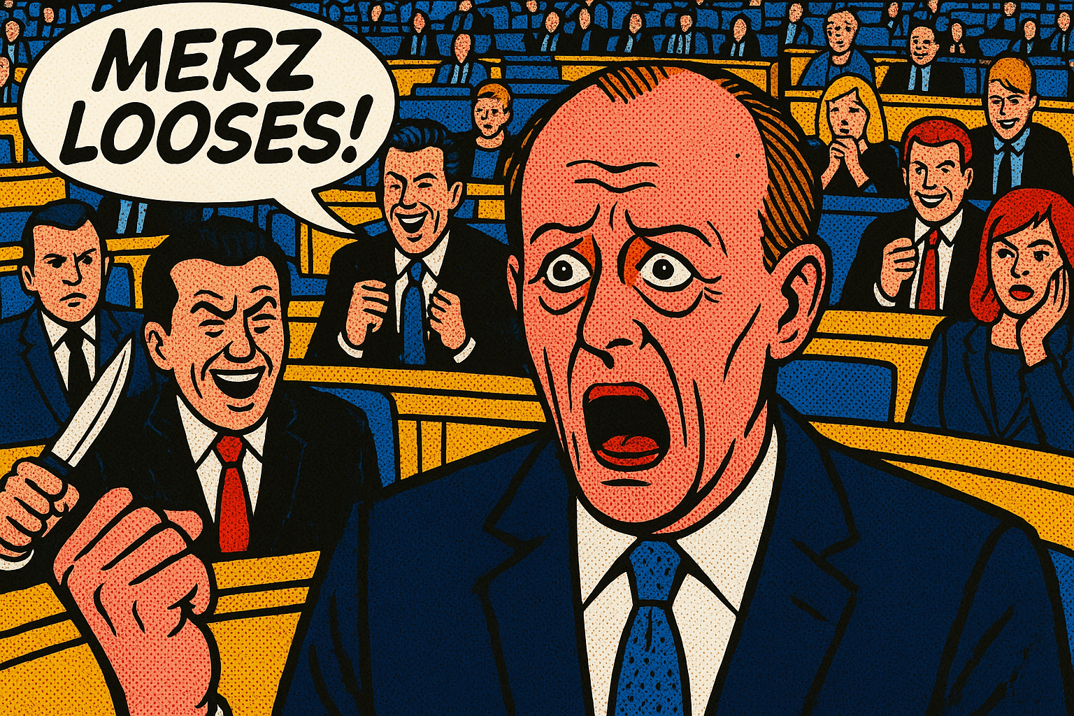 10:07 Uhr. Die Stimmen werden gezählt. Merz erhält nur 310 Ja-Stimmen. Sechs fehlen zur Kanzlermehrheit. Die Nachricht schlägt ein wie ein Blitz. Börsen rauschen ab, Reporter taumeln durchs Regierungsviertel, die AfD feixt, die Demokratie schwankt. Friedrich Merz verlässt den Plenarsaal. Der designierte Kanzler ist gefallen. Noch nicht Kanzler!