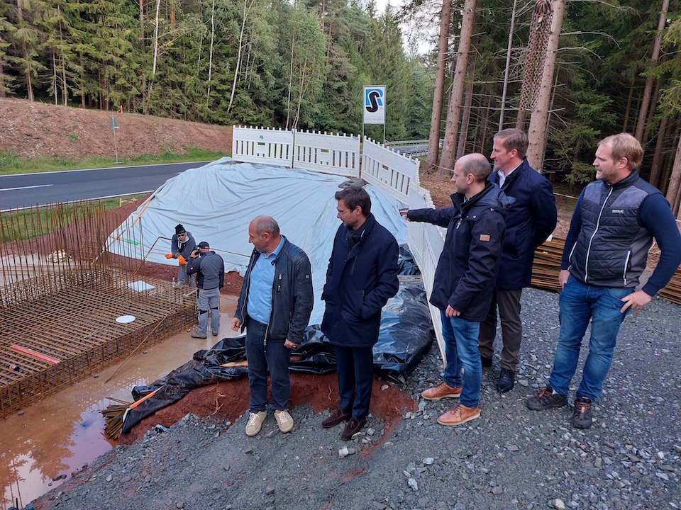 zur Einmündung Richtung Kindlas zuständig. Das Staatliche Bauamt hebt für die Überquerung der Staatsstraße noch heuer im Winter ein über 23 Meter langes Brückenbauwerk ein, dessen Fundamenten derzeit betoniert werden.
