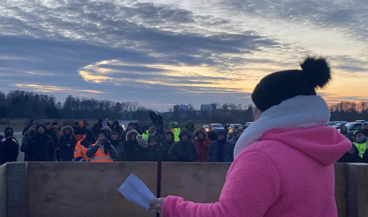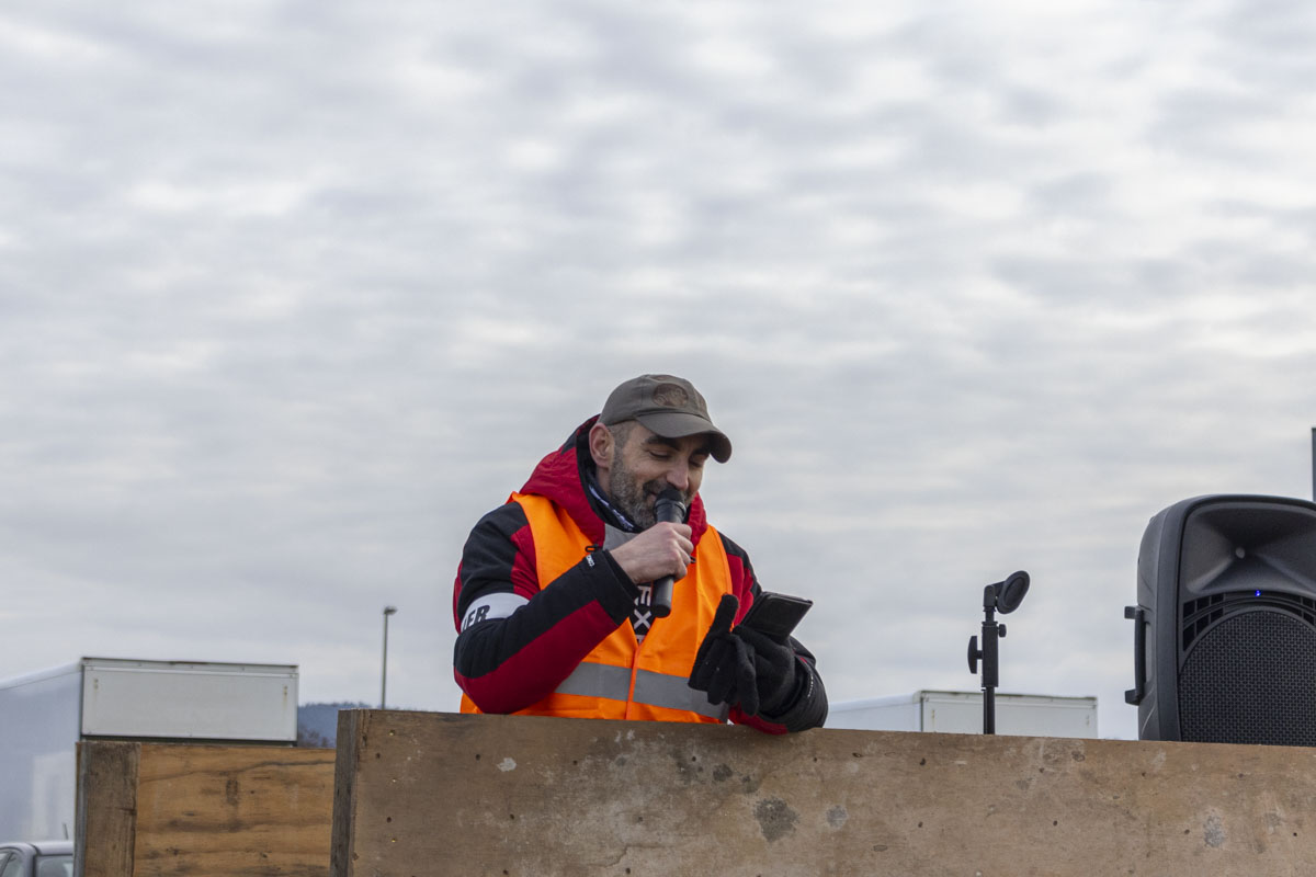 Es ist kurz vor der Kundgebung, 16.30 Uhr am Montagnachmittag. In der Stadt ist es wieder ruhig geworden, die Landwirte aus der Region sind auf ihre Höfe heimgetuckert. Am neuen Festplatz harren nach Polizeischätzung rund 150 Zuhörer bei eisigem Wind aus. Hier hat Privatmann Sascha Oehlerking parallel zum Bauernprotest eine Veranstaltung angemeldet, eine Art Protest für alle Bürger. Nach zwei Korsos durch die Stadt steht mit der Kundgebung der vorletzte Akt auf dem Programm. Danach folgt noch ein letzter Konvoi.