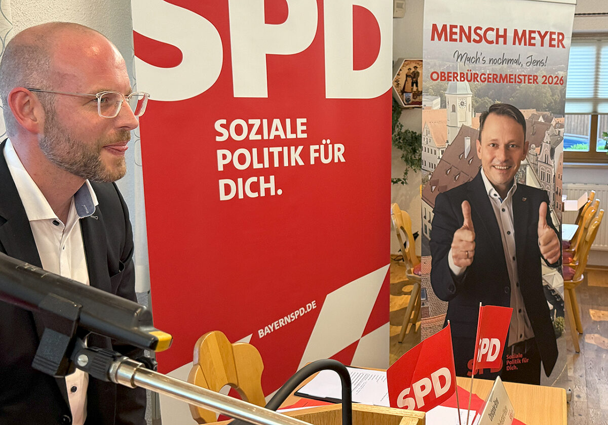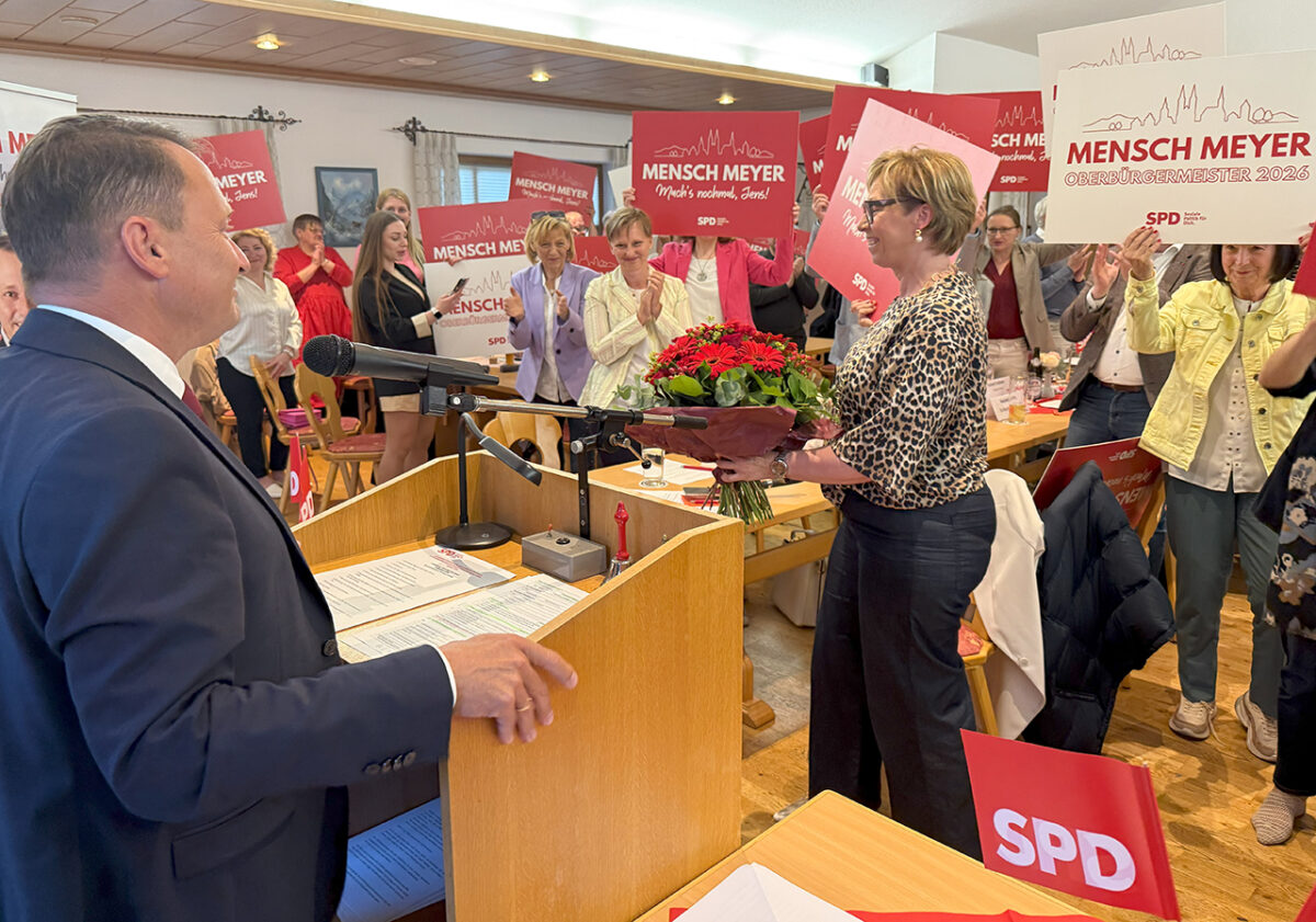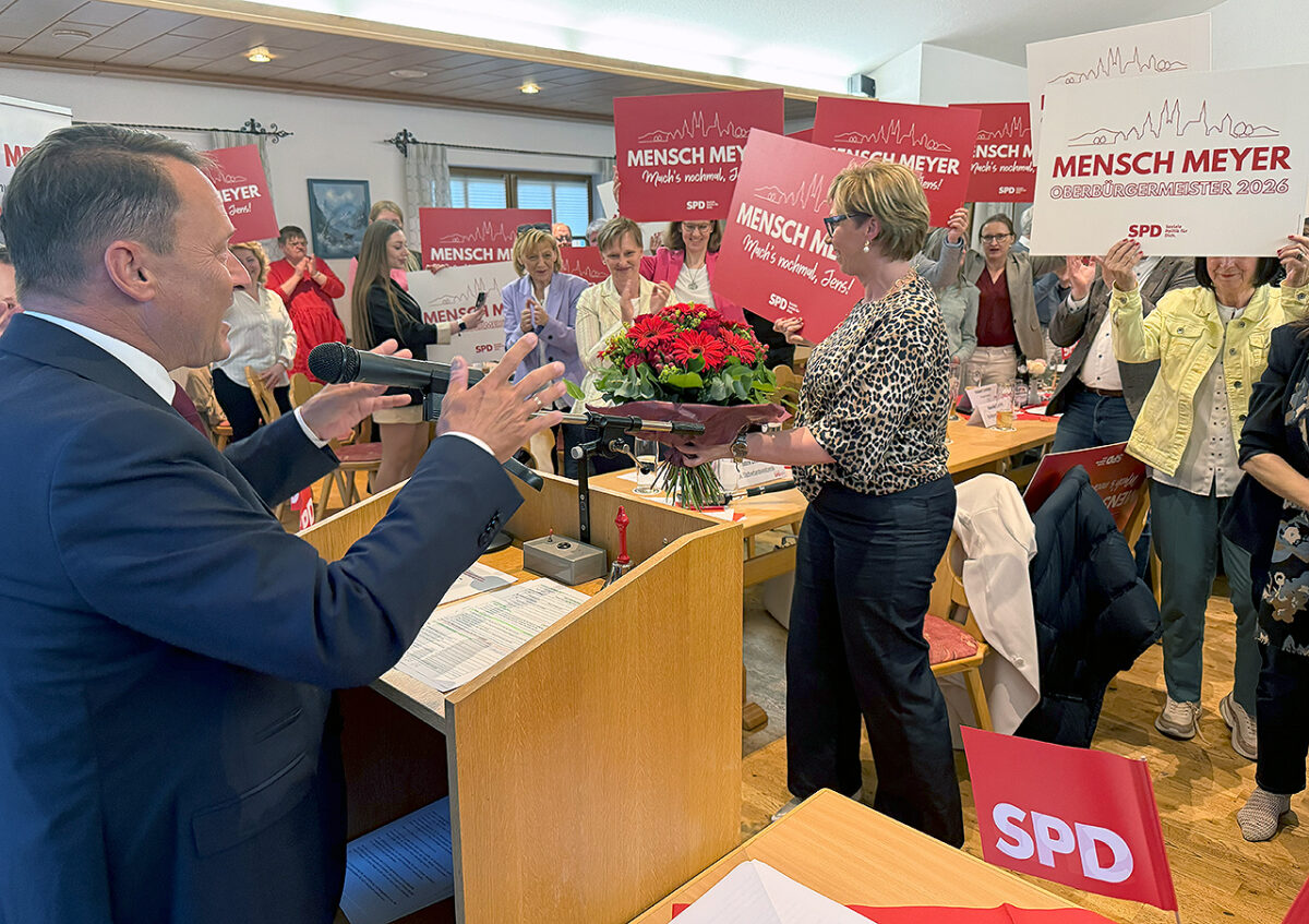 Es ist einer dieser Abende, an denen selbst bodenständige Weidener Genossen das Gefühl haben konnten, der gute alte Ortsverein sei in eine Wahlkampfmaschine amerikanischer Prägung geraten. Rote Plakate mit der Silhouette Weidens, „Mensch Meyer“-Slogans zwischen Pathos und Augenzwinkern, stehende Ovationen, Blumensträuße, Schulterklopfen – der Auftakt zur Kandidatur des amtierenden Oberbürgermeisters Jens Meyer als kommunalpolitische Inthronisation.