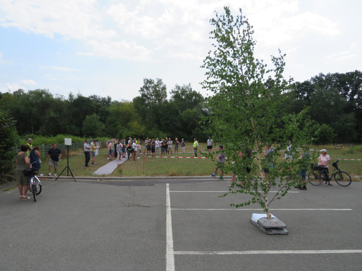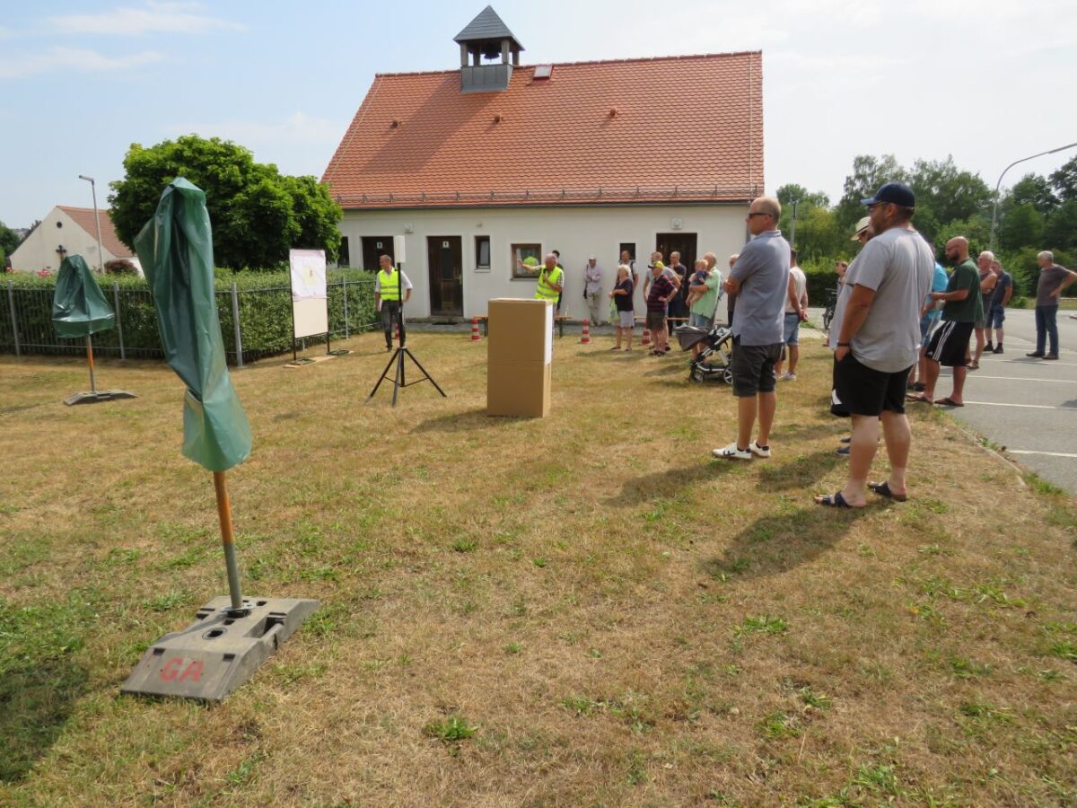 In zwei Stunden erläuterten die Planungsverantwortlichen die geplante Umgestaltung. An der Grundschule, dem von der Gemeinde angekauften Obstgarten, vor dem Friedhof und im Julius-Meister-Weg waren Kartons, Stände und Holzpaletten als Platzhalter für Bäume, Bänke oder Ruhepunkte drapiert.