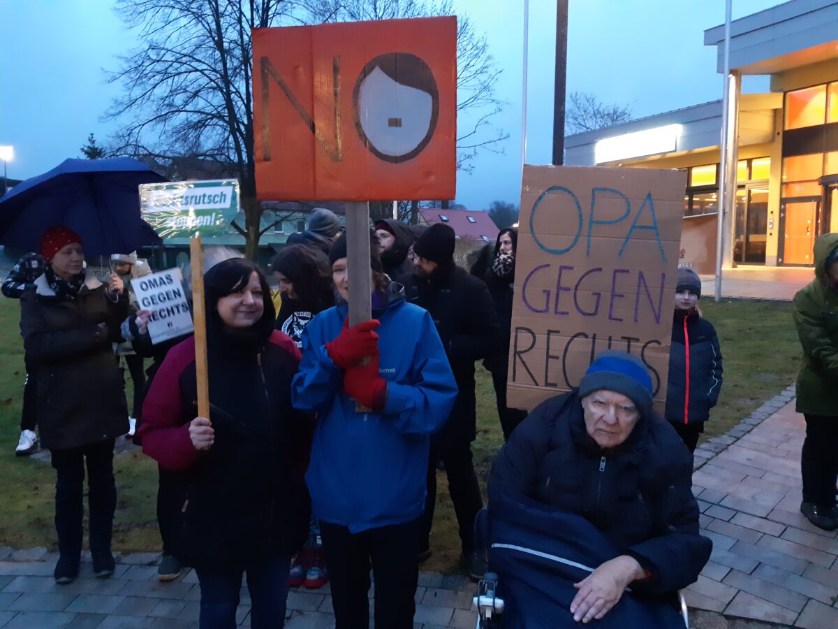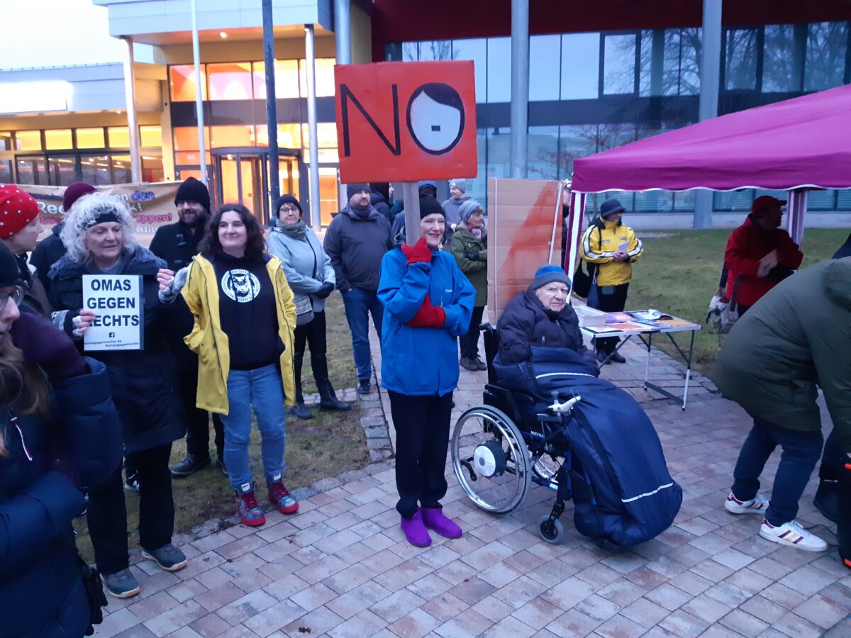 Die erste Rednerin legte gleich den Finger in die Wunde und verwies auf die Unterschriftenliste gegen eine Asylunterkunft in Erbendorf (Beitrag hier). Dabei sei die Angst vor Antidemokraten und Hass-Schürern viel berechtigter. Die nächste Rednerin kritisierte das sexistische, frauenfeindliche Programm der AfD und rief unter Applaus: „Niemand hat über unsere Kleidung, Gebärmutter oder Karriere zu entscheiden.“ In den Reden klang auch immer wieder an, wie wichtig Migrantinnen und Migranten für die Wirtschaft, aber auch für das soziale Miteinander seien. Der Protest gegen die AfD und rechte Ideologien war auch auf kreativen Plakaten zu sehen wie von den Omas und Opas gegen Rechts.