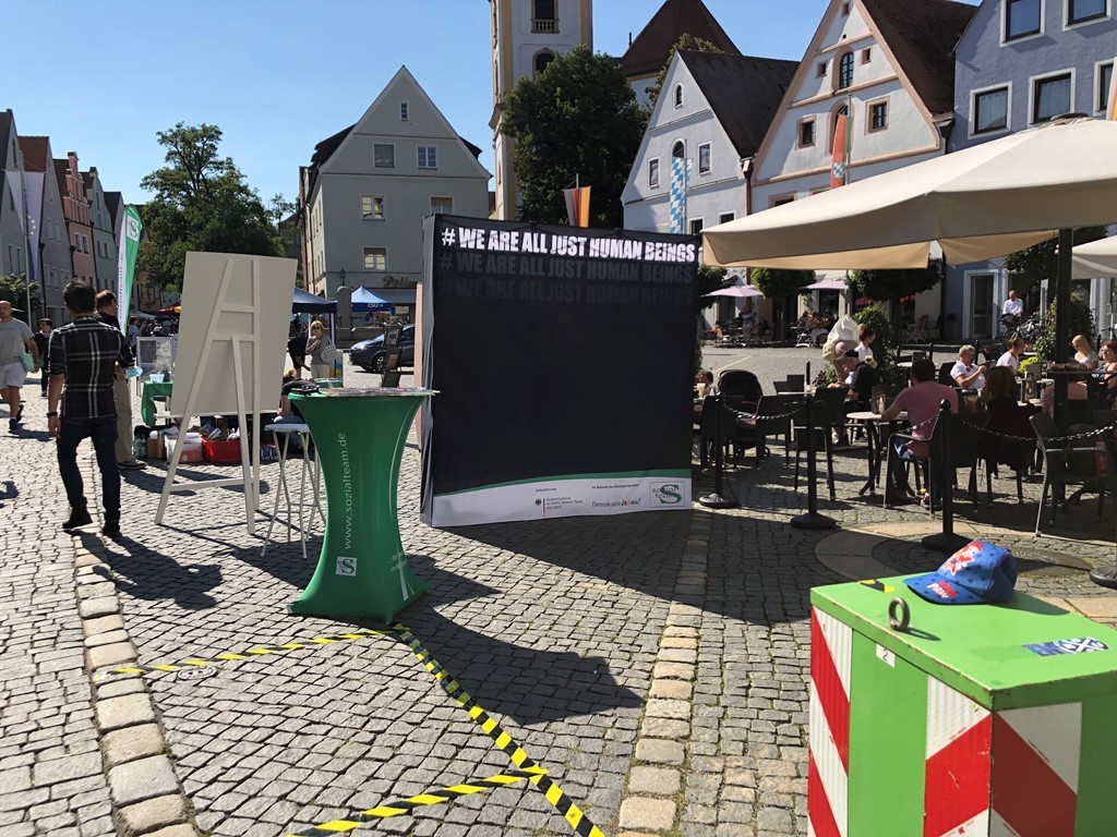 „Wir haben das Konzept damals bei ,Arbeit und Leben’ vorgestellt und eine Förderung aus dem Bundesprogramm ,Demokratie Leben!’ bekommen“, sagt Zanner. Kooperationspartner waren das Aktionsbündnis „Weiden ist bunt“ sowie die Beratungsstelle für seelische Gesundheit der Caritas in Weiden. „Wir haben nach unseren Live-Events eine Statistik gemacht, wie viele Leute sich bei den drei Live-Events in der Fußgängerzone beteiligten – das waren insgesamt 509 Personen, darunter Politiker, die Bilder und Statements schickten.“