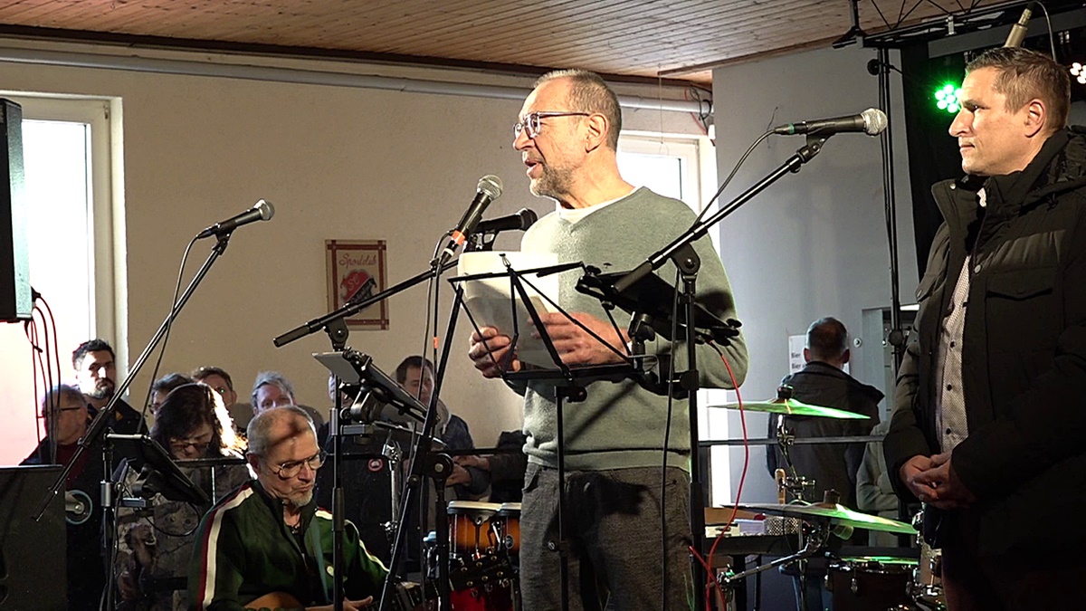 Karl Lorenz, der Organisator der Veranstaltung, war im Vorfeld sehr skeptisch, ob viele Leute bei wunderbarem Wetter kommen würden. „Eine halbe Stunde vor dem Beginn waren gerade einmal ein paar Stühle besetzt.“ Aber was dann kam, übertraf sogar seine kühnsten Vorstellungen. Als er kurz nach 16 Uhr auf die Bühne trat, war die SC-Halle komplett überfüllt. Fast 500 Personen fanden sich ein, um unter dem Motto „Musik für Vielfalt und Demokratie – gemeinsam stark“, der Musik und den Wortbeträgen zu lauschen.