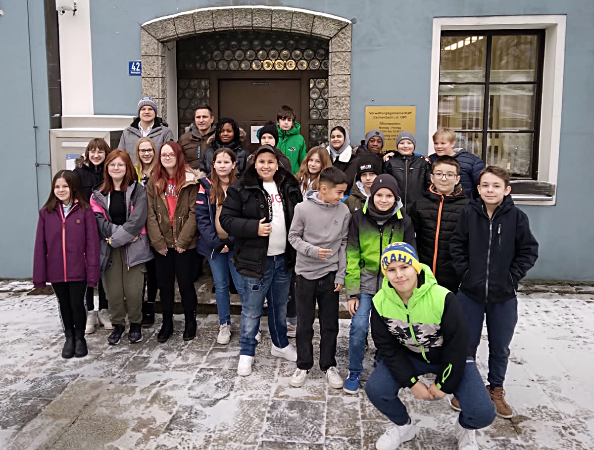 Etwas später durfte die sechste Klasse in das Rathaus in Eschenbach. Die Klasse behandelt momentan im GPG Unterricht das Thema Gemeinde. Um praxisnahe Eindrücke zur erhalten, besuchte die Klasse nun Bürgermeister Marcus Gradl an seinem Amtssitz am Stadtberg. Dabei durften die Kinder Fragen stellen und ihre Ideen an Marcus Gradl richten. Es war ein sehr interessanter Austausch für die jungen Schülerinnen und Schüler sowie auch für Bürgermeister Gradl.
