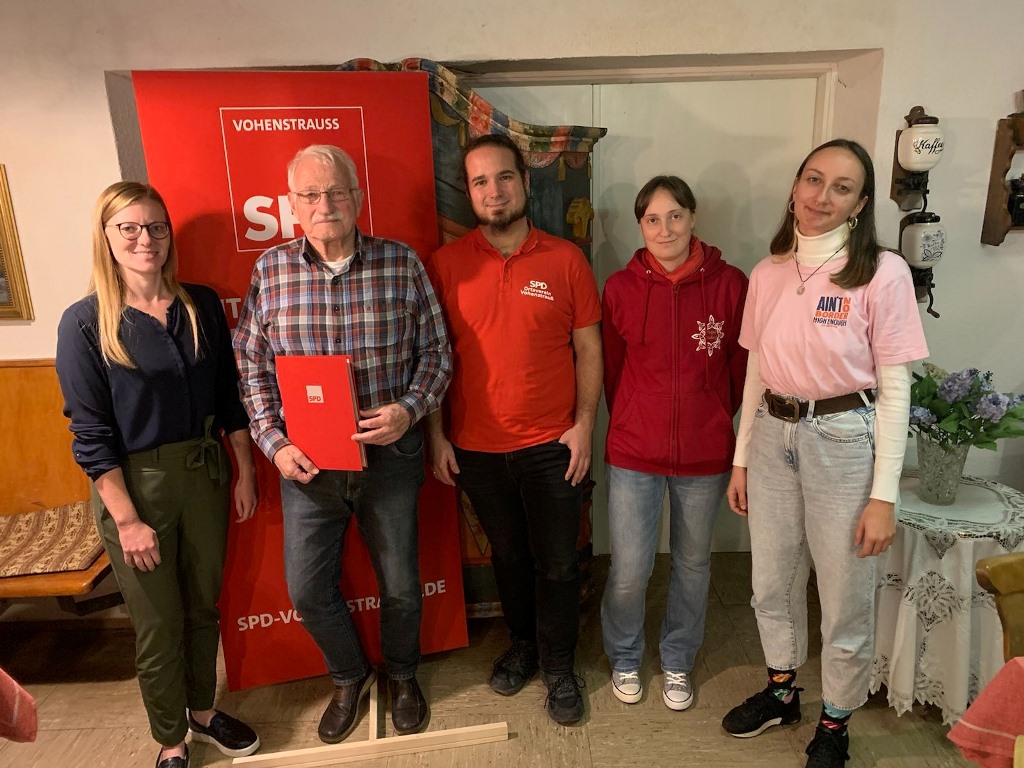 Der SPD-Ortsverein Vohenstrauß traf sich am 13. Oktober 2022 zur Jahreshauptversammlung im Gasthaus Schloßwirt in Altenstadt bei Vohenstrauß. Erich Völkl wurde für 45 Jahre Mitgliedschaft in der Partei vom Ortsvereinsvorsitzenden Manuel Dippold geehrt. „Als ich zur Welt kam, warst du schon zwölf Jahre dabei“, wusste Manuel Dippold den nicht alltäglichen Zeitraum einzuordnen.