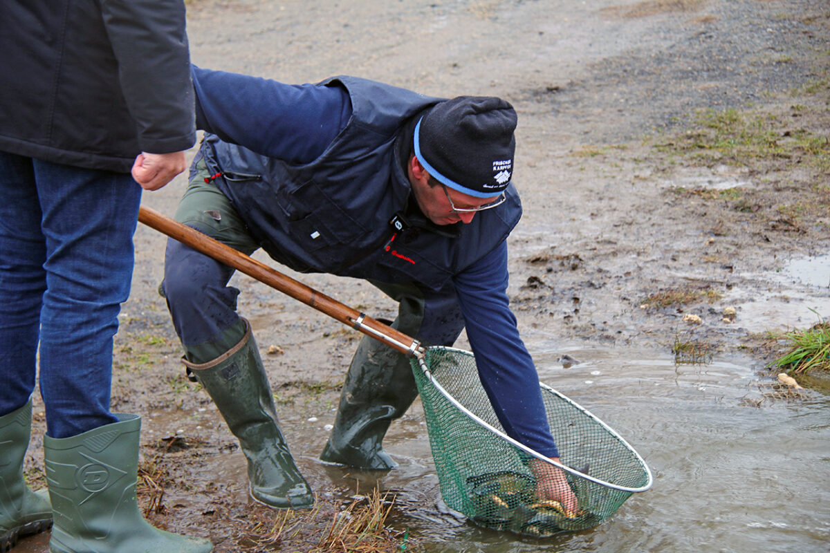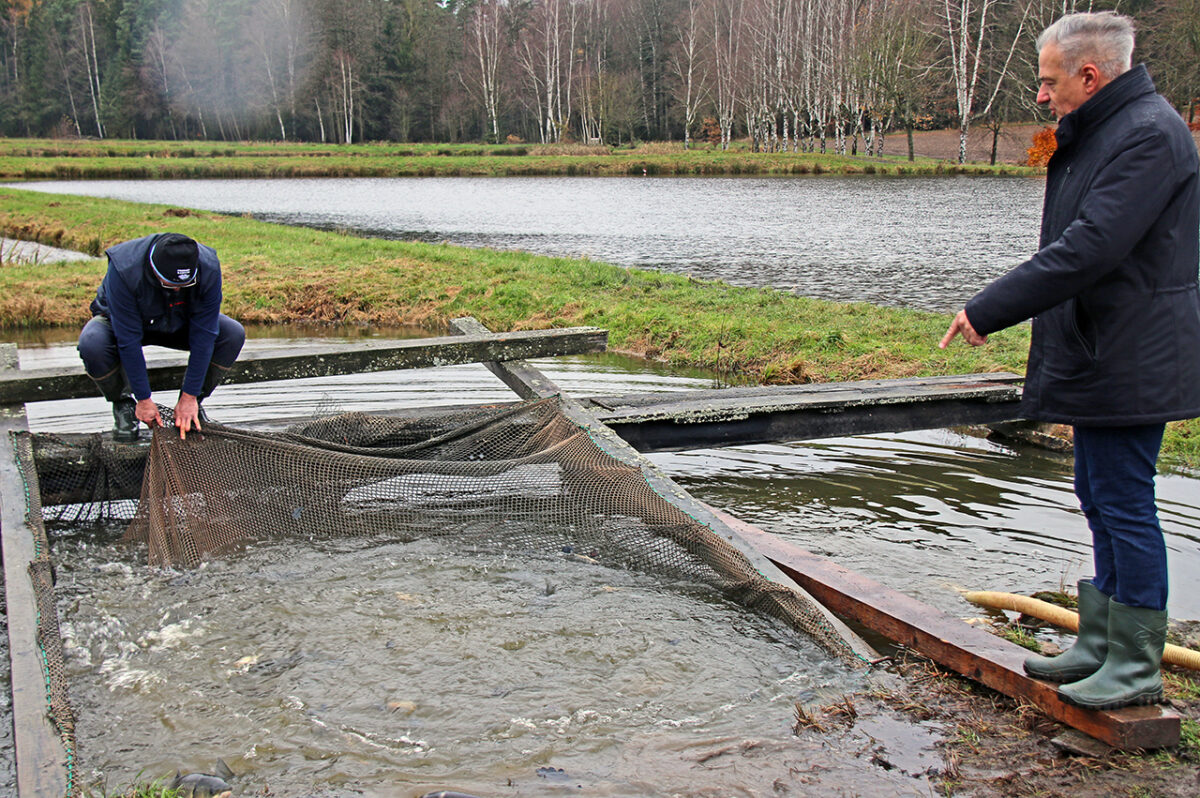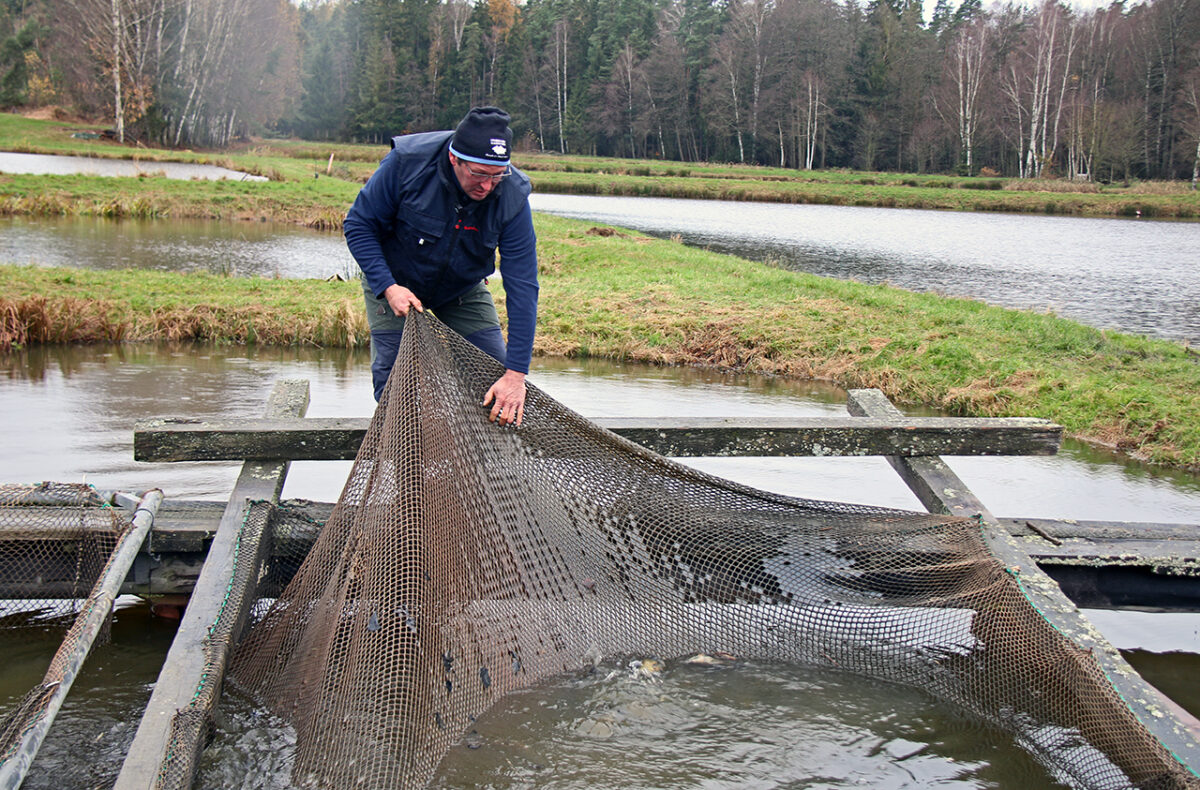 Fischzüchter Klaus Bächer wacht mit Adlerauge über seine 50 Karpfenteiche