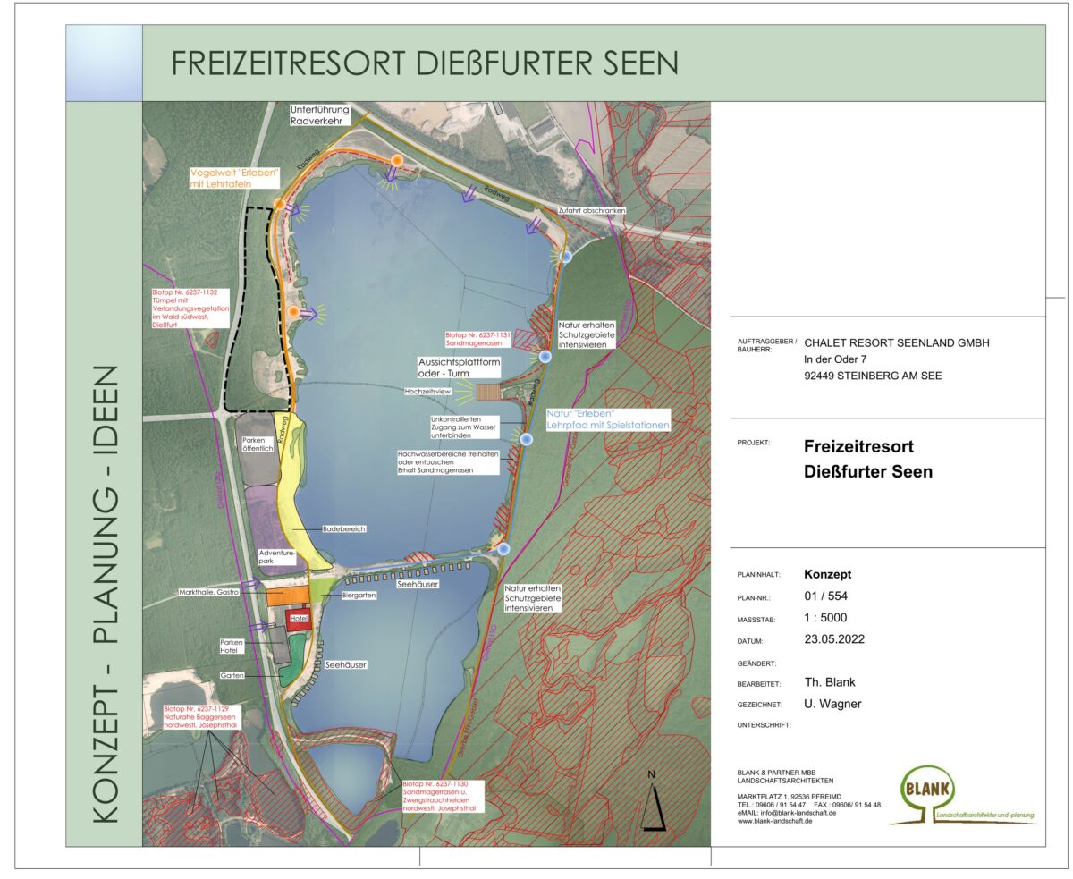 Großes Plus des Gebiets sei die direkte Lage am See. „Menschen verbringen gerne Zeit am Wasser.“ Für das Westufer stellt sich Zeller ein (Familien-)Hotel mit 50 Zimmern und Indoorspielplatz vor. Die Planung sieht zudem 20 Ferienhäuser am Wasser vor. Ein ähnliches Angebot gibt es neuerdings am Steinberger See: See-Chalets, teilweise mit eigener Sauna.
