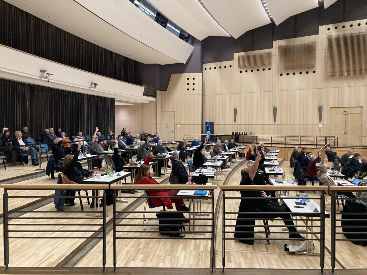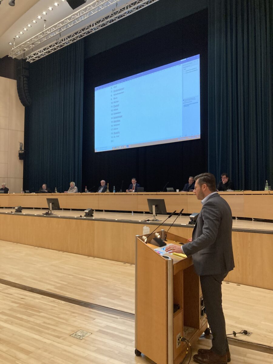 Die Liste ließe sich lange fortsetzen. Helmut Schöner, Ökologisch-Demokratisch (pro): “Wir sind für den Schutz unserer alten Leute, unserer Kinder, aller, die schwächer sind als ein Auto, verantwortlich.” Lothar Höher, CSU (contra): “Wir sollten soviel Vertrauen in die Regierung unseres Landes haben, bis sie das angekündigte Gesetz vorlegt.” Christoph Skutella, FDP (pro): “Lasst uns offen bleiben. Wir werden zustimmen.” Künftige Diskussionen könnten ganz andere sein: Was sei Emission beim Elektro- oder beim Wasserstoffauto? Karl Bärnklau, Grüne (pro), Michael Holl, SPD (pro)… Am Ende wird zweimal durchgezählt, weil’s so knapp aussieht: 21 Stadträte stimmen für das Positionspapier. 20 dagegen.