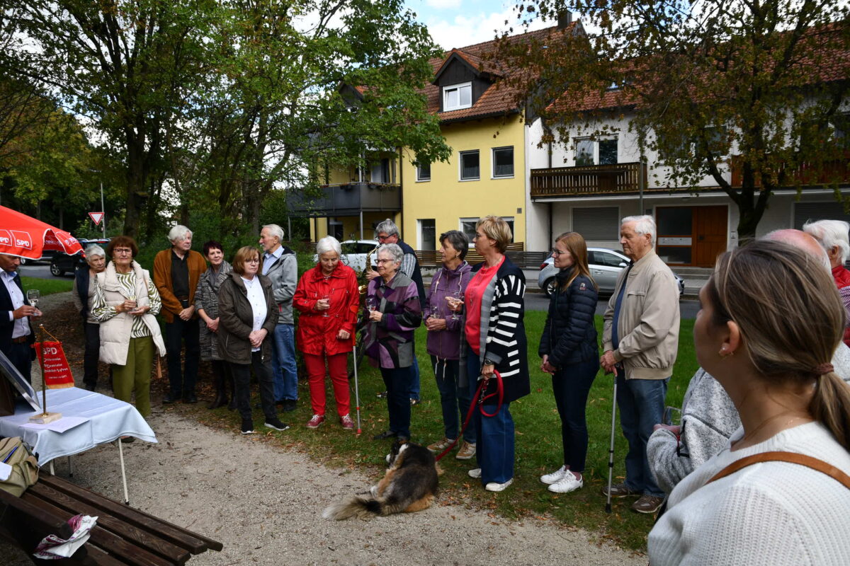 „Vor mehr als 40 Jahren hat diese Tafel hier bereits gestanden, ist aber mit der Zeit Vandalismus zum Opfer gefallen. Diese Ehrentafel überdauerte in einer Garage, bis unser Ortsverband beschlossen hat, sie hier wieder aufzustellen“, betonte der Ortsvorsitzende Herbert Hammer. An dieser Feierstunde nahmen neben Oberbürgermeister Jens Meyer zahlreiche SPD-Stadträte und Ortsverbandsmitglieder teil. Feierlich umrahmte Herbert Schmid die Enthüllung musikalisch.