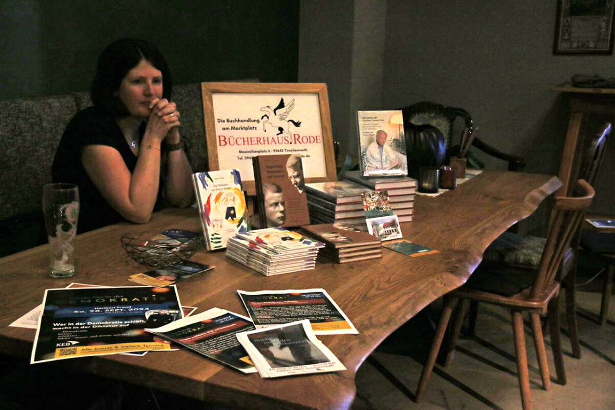 Im Vohenstraußer Café Friedrich kreuzten sich nicht zum ersten Mal die Wege des Buchautors Siegfried Kratzer und von Dorothea Woiczechowski-Fried, Witwe des Holocaust-Überlebenden Alexander Fried und Tochter einer jüdischen Mutter, die den Nazi-Schergen nur knapp entrann.