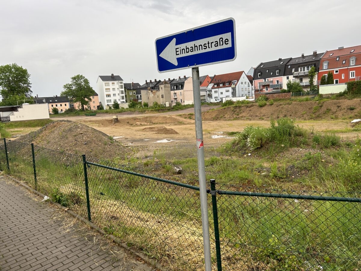 Nachdem der Regen eine kurze Pause eingelegt hatte, lud Baudezernent Alkmar Zenger zu einer Besichtigung des Baugeländes ein. Vor Ort erläuterte er den zahlreichen Teilnehmern die ersten Entwürfe für eine Bebauung des Areals. So soll ein Ärztehaus mit Tiefgarage an der Bahnhofstraße eine gewisse Abschirmung für die dahinterliegenden Wohnbebauung für hochwertiges Wohnen ohne Straßenlärm gewährleisten.