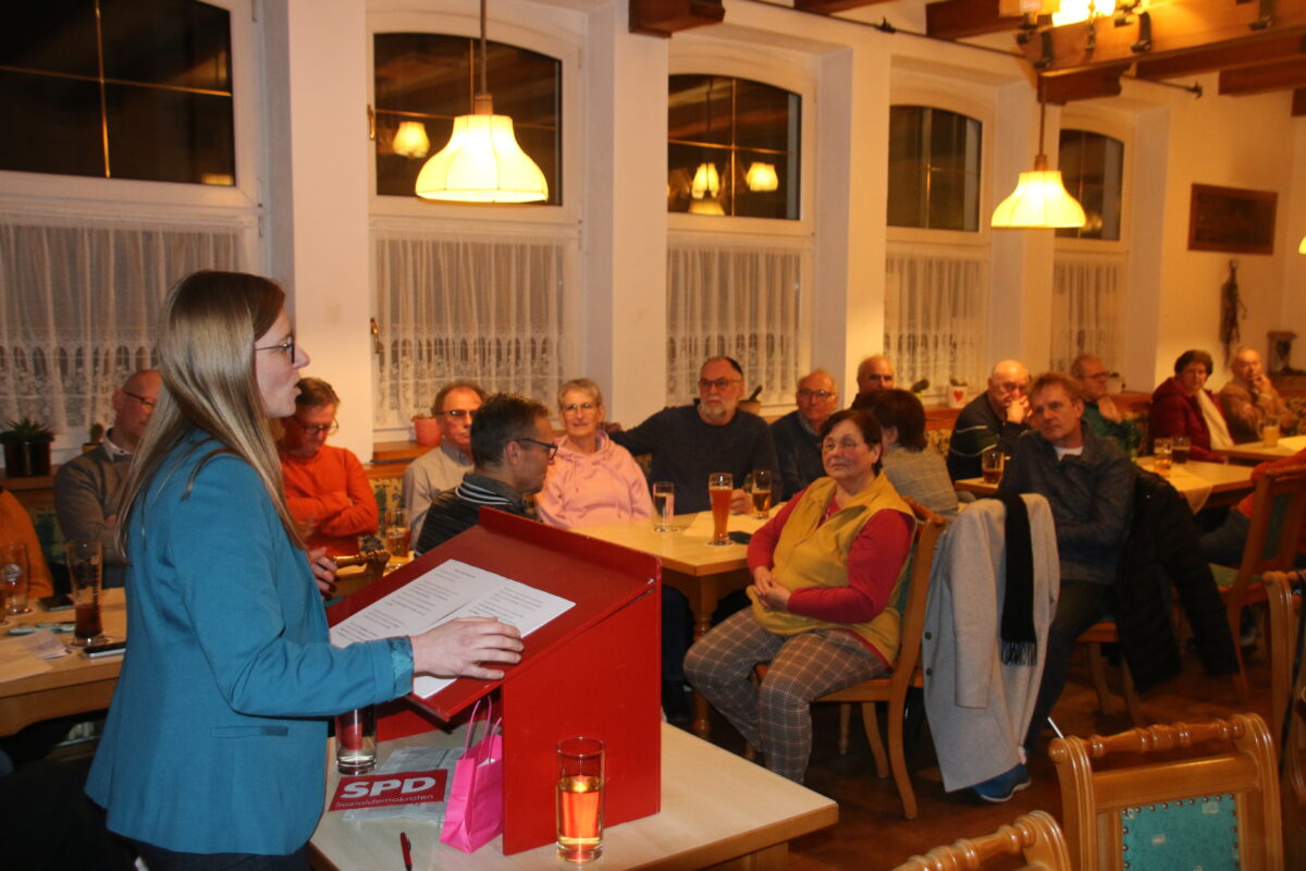 Politischer Aschermittwoch am Valentinstag – SPD-Ortsvorsitzende Silke Tanner sparte nicht mit lieben Worten für Bürgermeister Bernhard Stangl, ihrem „Superstar“. Gleichzeitig warnte sie den „Blumen-Bernhard“, wie man ihn in Pressath nennt: Wenn seine Rede zu lang würde, zeige sie ihm die rote SPD-Fahne.