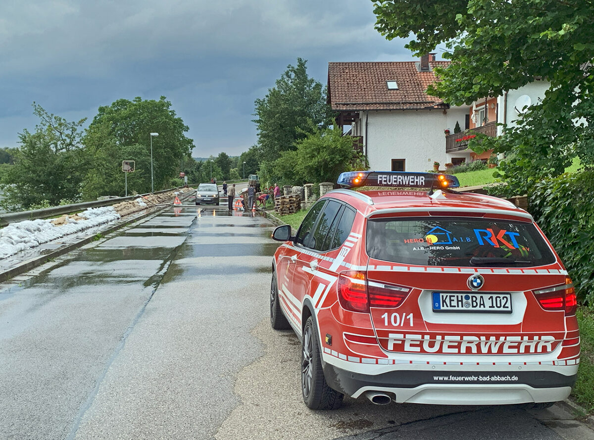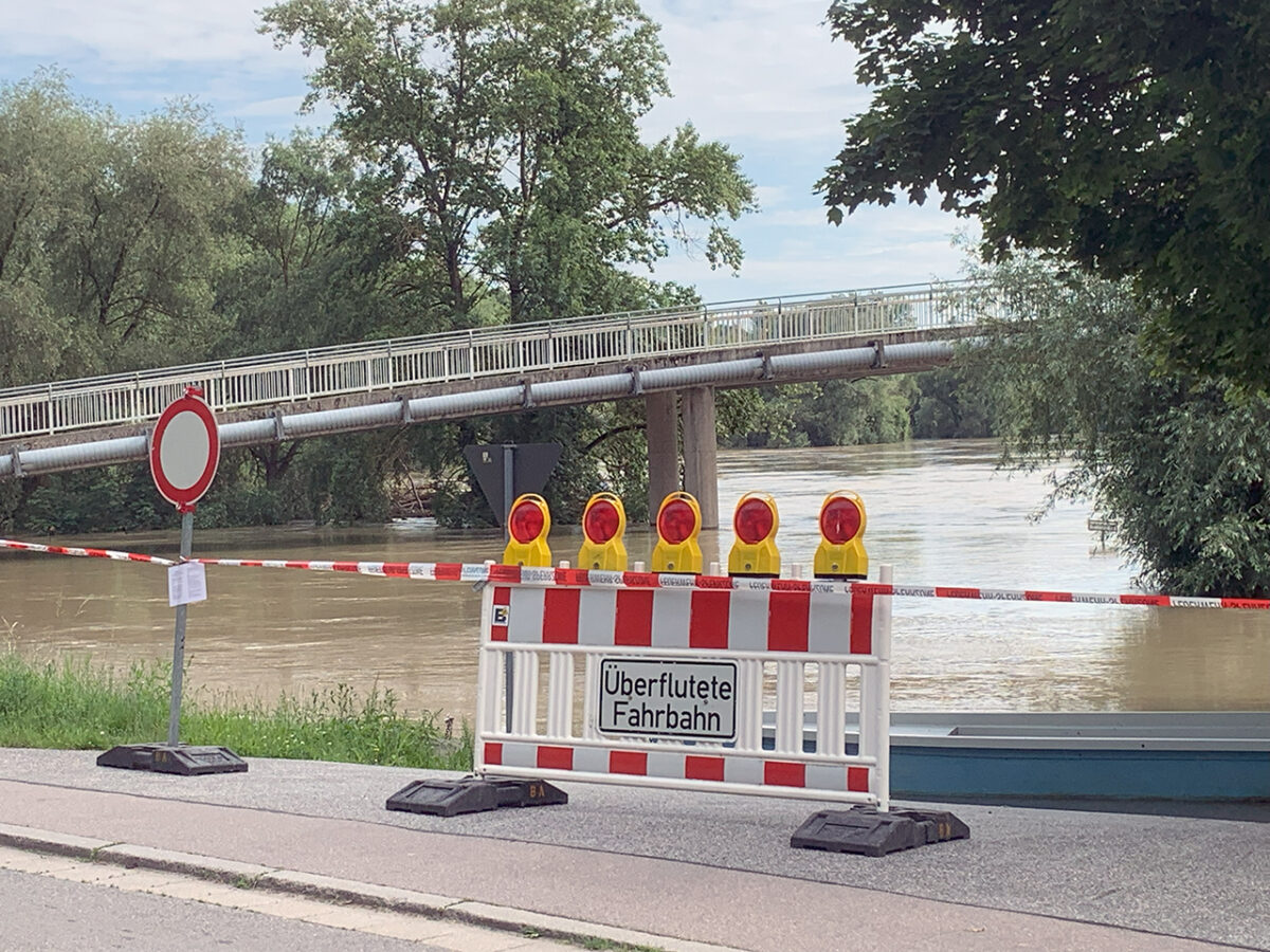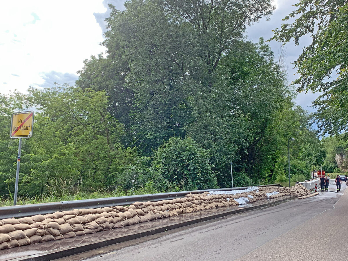 Entlang der Uferstraße zwischen Bad Abbach und Oberndorf halten die über einen Kilometer bis zum Damm geschichteten Sandsäcke kaum mehr das Wasser ab. Aus mehreren Kanaldeckeln wird Wasser gepumpt. Warum die Fußgängerbrücke gesperrt ist, vor der die Feuerwehr ein provisorisches Zelt aufgestellt hat, erschließt sich nicht auf den ersten Blick. Man kann sich gut vorstellen, dass ein 17-Jähriger davon ausgehen konnte, noch problemlos mit seinem Fahrrad ans andere Ufer zu gelangen. Fast hätte er den Irrtum teuer bezahlt.