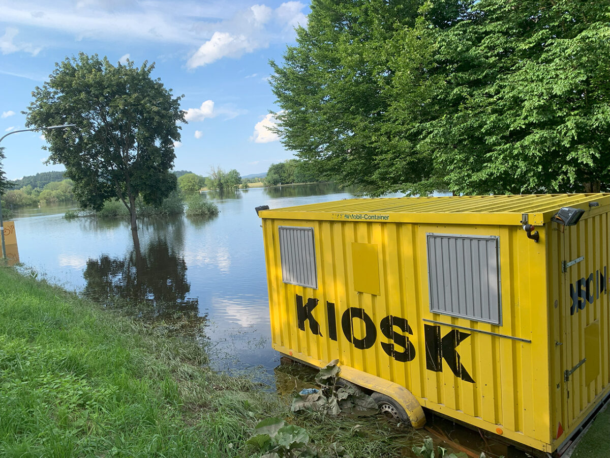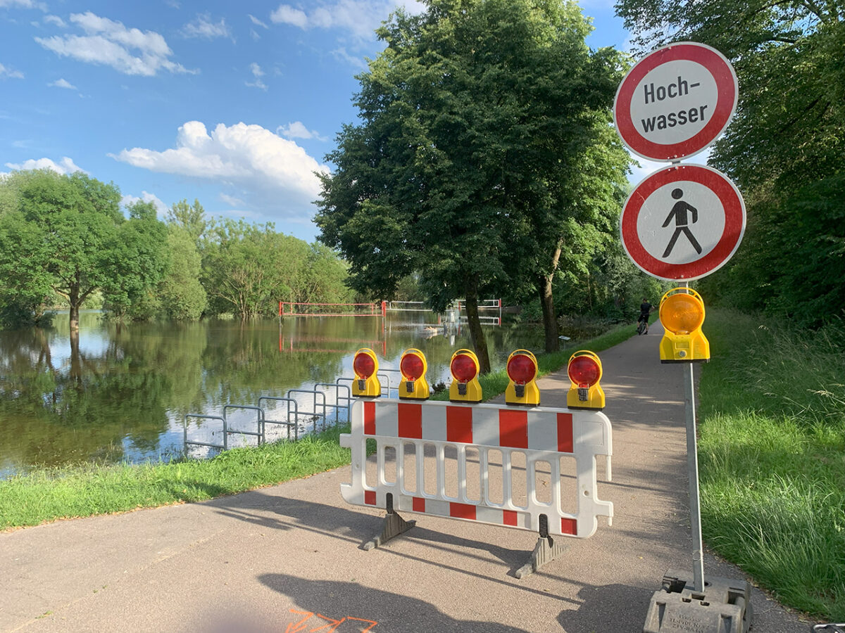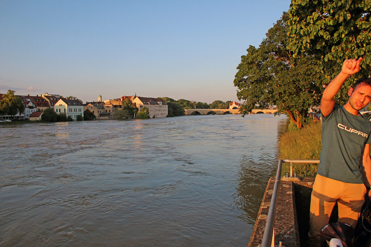 Entlang der Uferstraße zwischen Bad Abbach und Oberndorf halten die über einen Kilometer bis zum Damm geschichteten Sandsäcke kaum mehr das Wasser ab. Aus mehreren Kanaldeckeln wird Wasser gepumpt. Warum die Fußgängerbrücke gesperrt ist, vor der die Feuerwehr ein provisorisches Zelt aufgestellt hat, erschließt sich nicht auf den ersten Blick. Man kann sich gut vorstellen, dass ein 17-Jähriger davon ausgehen konnte, noch problemlos mit seinem Fahrrad ans andere Ufer zu gelangen. Fast hätte er den Irrtum teuer bezahlt.
