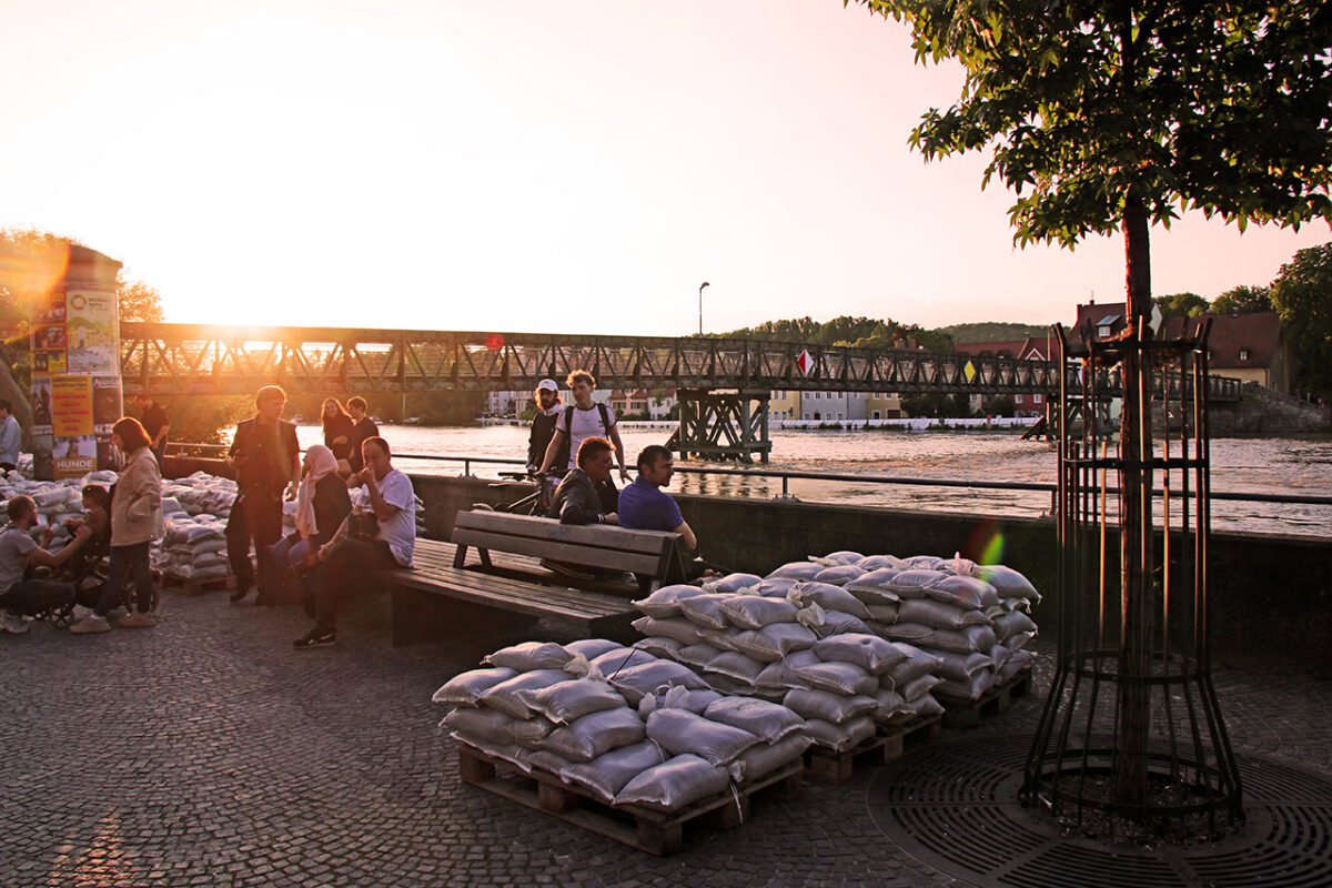 Am Donauufer ist der Boden durchweicht, entlastende Maßnahmen sollen einen „Grundbruch“ verhindern. Einsatzkräfte beginnen am Mittwoch, kontrolliert Wasser an den Schutzwänden am Donauufer vorbeifließen zu lassen. „Wir haben einen völlig durchnässten Boden“, erklärt Michael Köstlinger, Leiter des Regensburger Tiefbauamts.