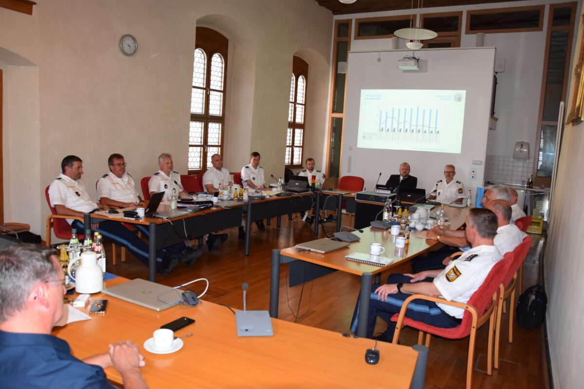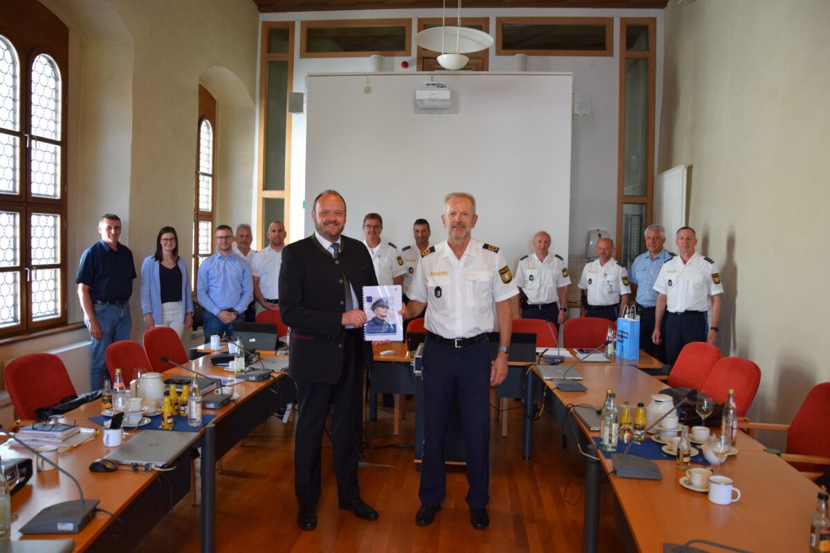 Neben Polizeipräsident Thomas Schöniger und Landrat Andreas Meier fanden sich die Leiter der umliegenden Polizeibehörden sowie die zuständigen Führungskräfte des Landratsamtes im Sitzungssaal ein. Nach kurzer Einleitung übergab der Landkreischef das Wort dem Polizeipräsidenten.